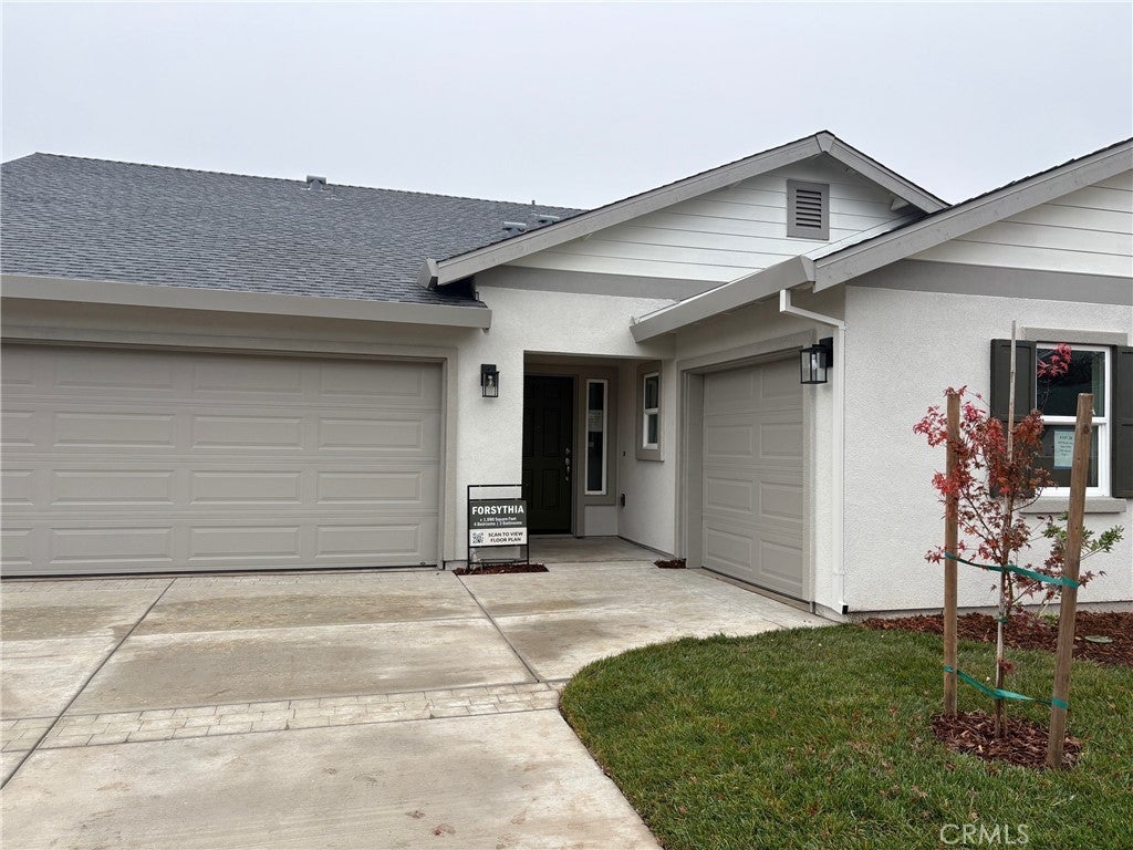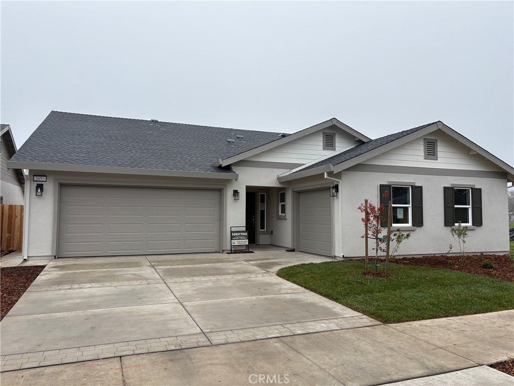This thoughtfully designed 1,990 sq. ft. single-story home has 4 bedrooms and 3 full bathrooms and 3 car garage. An open-concept layout connects the spacious family room, dining area, and contemporary kitchen, which showcases beautiful granite countertops, a stainless steel appliance package, and convenient USB ports. Throughout this completed home you'll find designer upgrades mixed with energy efficiencies such as; LED lighting, dual-glazed vinyl windows, and an energy-efficient electric water heater to support long-term savings, the home is prepped for an electric vehicle charging station and equipped with a Wi-Fi-capable garage door opener for added convenience. Automatic humidity-sensing fans, smoke and carbon monoxide detectors, and vacancy sensor lighting enhance daily comfort and peace of mind. A built in covered patio that connects the living room and primary bedroom allows you to enjoy a fully fenced backyard! Another amazing feature is the two-car and separate one-car garage both with house access. This new construction home offers exceptional function, style, and value. Surrounded by scenic landscapes and winding trails, Orchard Creek invites you to live where nature and lifestyle come together. Just minutes away, you'll enjoy easy access to the best of Chico, including Bidwell Park, downtown dining and shopping, top-rated schools, Enloe Medical Center, and California State University, Chico. Daily essentials are close at hand, with nearby grocery stores, fitness centers, and local farmers markets.