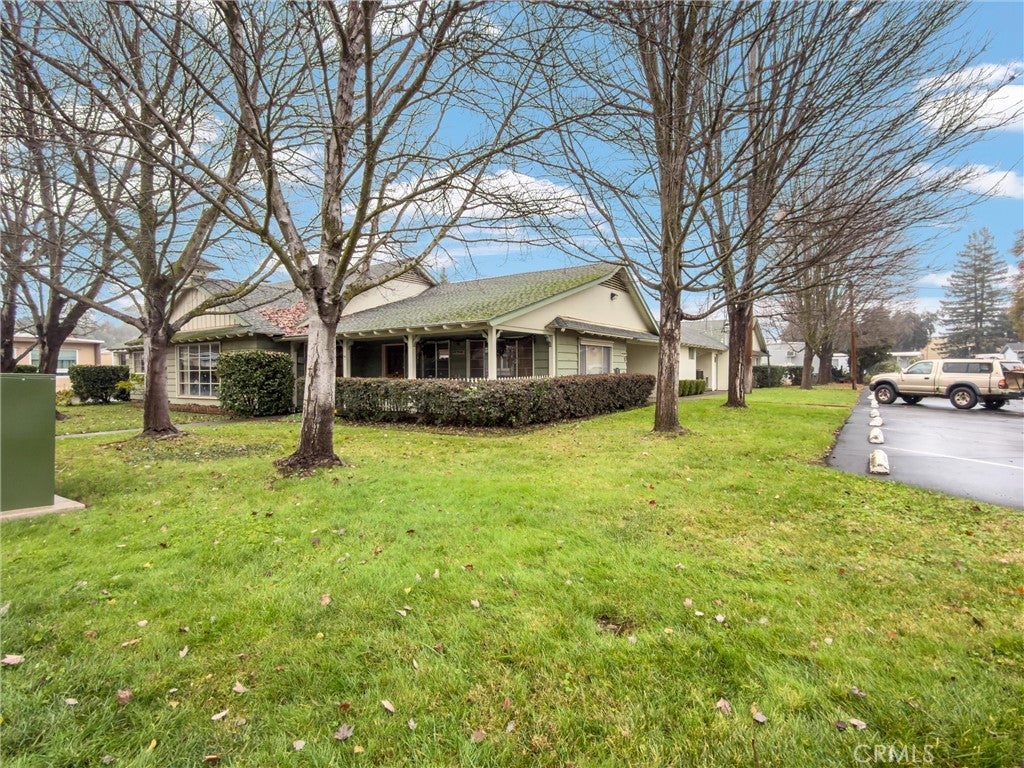 Welcome to Kentwood Mobile Estates, a well-established 55+ senior community offering one of the lower space rents in Chico along with desirable amenities. This 3-bedroom, 2-bath home offers approximately 1,368 sq ft (24’ x 57’) and presents a functional layout with excellent covered outdoor spaces. The roof was professionally coated in 2021, providing added weather protection and ongoing maintenance benefit. Exterior features include a full-length covered carport with privacy siding, a large covered and enclosed front porch, an additional covered walkway, and a wood-frame storage shed. A handicap lift provides added accessibility. Community amenities include a clubhouse, exercise room, and community swimming pool. The park also features convenient back-gate access to the adjacent shopping center, with this home located close to the gate for easy access to nearby shops and services. An excellent opportunity to own in a senior community offering affordability, amenities, and a convenient location.