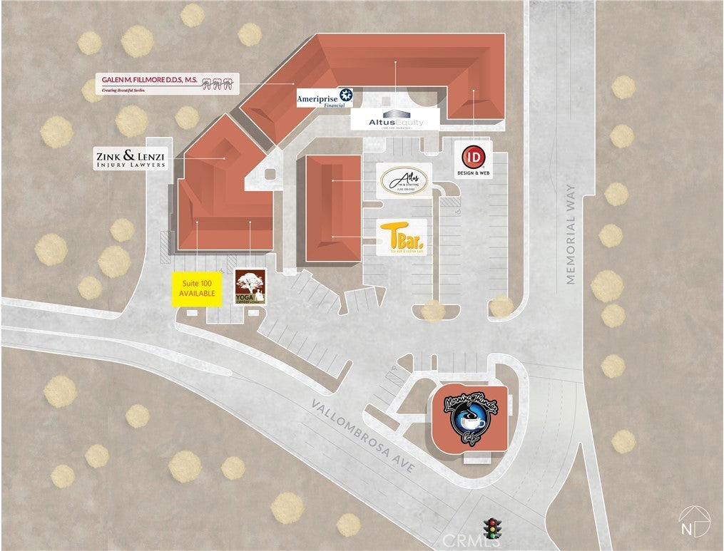 Retail space in Camellia Courtyard, a thriving commercial center home to many long term and successful businesses. Great location with excellent visibility, easy access, signage and private parking. Suite 100 includes an open floorplan with office and storage areas.