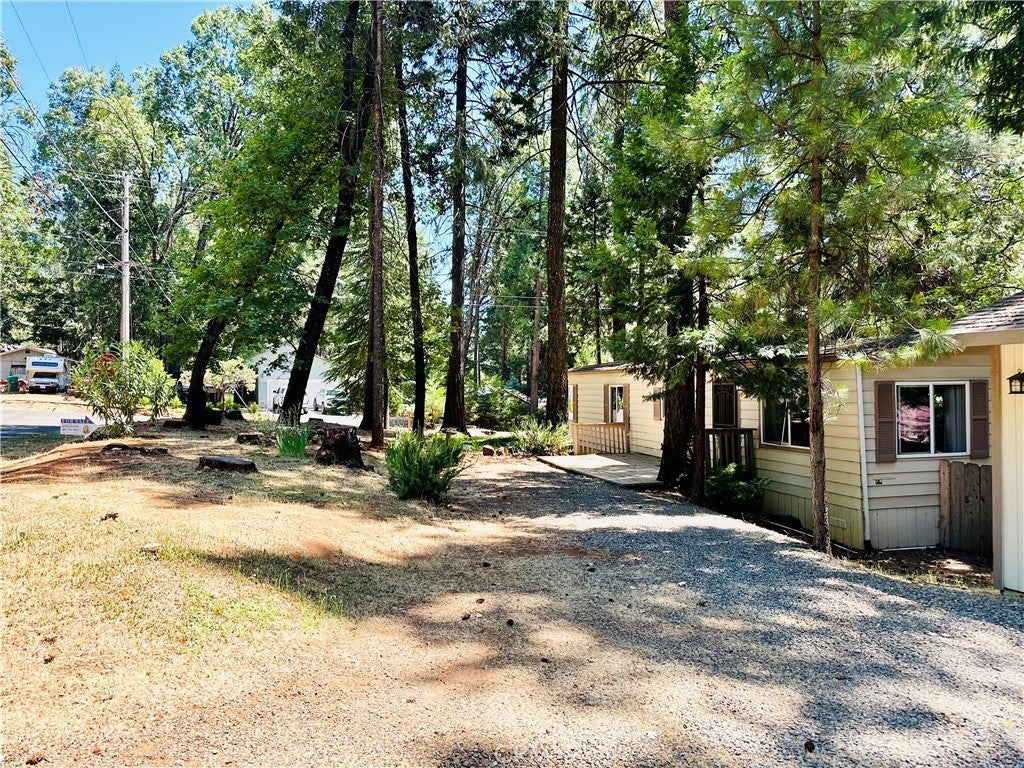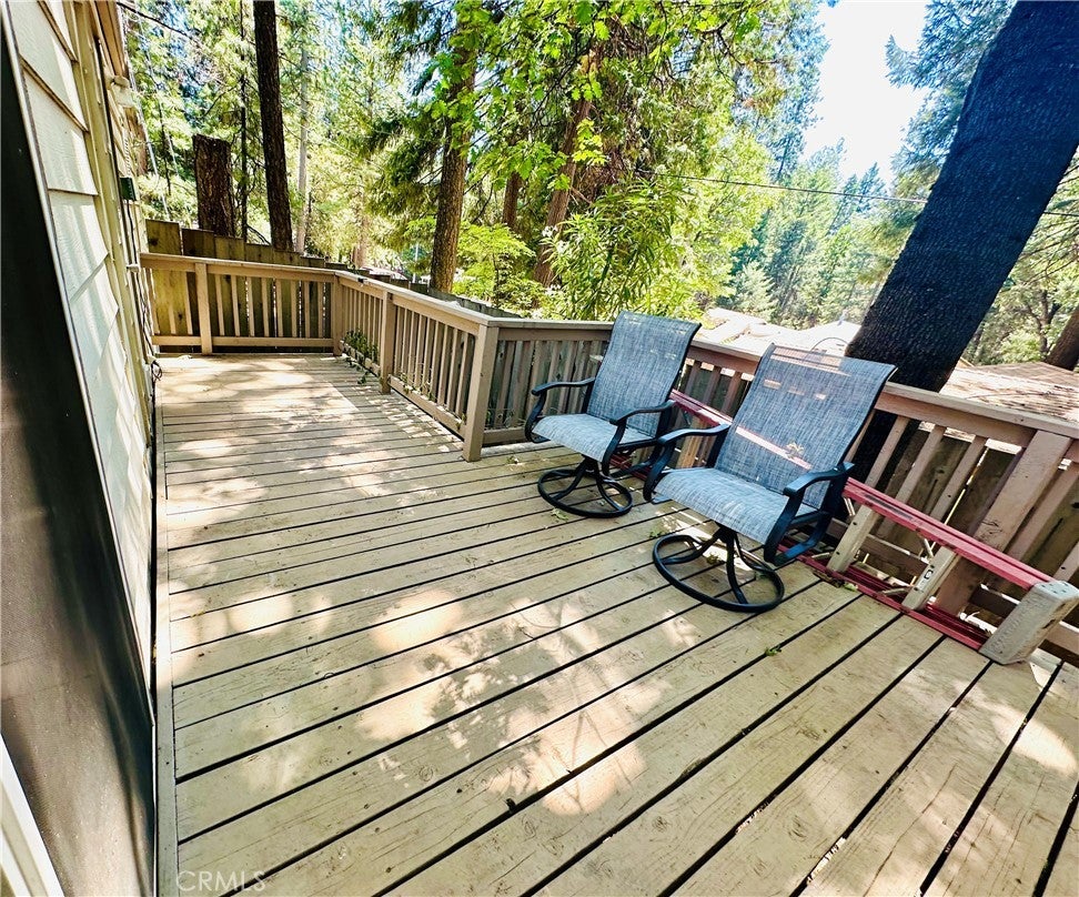 PRICE DROP!! Motivated Seller!! This delightful manufactured home on a permanent foundation is located on .32 acres. It sits on the corner of a quaint peaceful cul-de-sac shaded by pine trees. With front and back decks, you will be sure to find the perfect spot to relax and enjoy the scenery! Detached 2 car garage and spacious corner lot allow for plenty of parking options. Step into the living room and enjoy the vaulted ceilings, with a newer wood stove offering cozy radiant heat in the winter months. Wood grain vinyl plank flooring in main areas, carpet in bedrooms. Primary bedroom features a large closet, with lots of storage! Primary bathroom has two sinks with dual cabinets and a step in shower as well as a step down soaking tub for relaxation. Second bedroom is spacious with a large closet, and hallway bathroom also includes an accessible step in shower. The spacious kitchen features plenty of counter space, a breakfast bar opens to the dining area, and the dining area has a built in hutch for more storage. The considerable laundry room also doubles as an office space with built in floor to ceiling storage cabinets and desk! Brand new furnace installed 5/2025 The front entry and home are all single story, allowing accessibility for those with limited mobility. Back deck has stairs down to the fenced yard. This home is within the POA, just minutes from the community swimming pool, hiking trails, tennis and bocce ball courts and so many amenities!