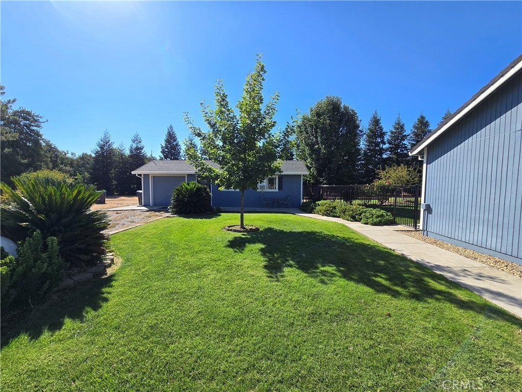 Welcome to this beautiful 3-bedroom, 2-bath home on over an acre, where country living meets modern comfort in a peaceful, well-kept setting. Inside, you’ll find updated hickory wood floors and carpet, fresh interior and exterior paint, and a spacious living room with soaring vaulted ceilings that fill the space with natural light. The kitchen is designed with both function and style in mind, featuring a large walk-in pantry, an eat-up bar for casual meals, and updated stainless-steel appliances, including a quiet Bosch dishwasher. The guest bathroom has an updated vanity, while the primary suite offers vaulted ceilings, two roomy closets, and a bathroom retreat with a tile floor and walk-in shower. Two additional guest bedrooms provide flexibility for family, guests, or a home office. This property offers great versatility with both an attached 2-car garage and a detached 1-car garage complete with a bonus hobby room. RV owners will appreciate the full hookups and abundant space for RV, boat, or trailer parking. Outdoors, the property is equally impressive with a fully functioning solar system, sellers currently paying just $120 per month! A newly installed backyard fence makes the space perfect for dogs, while the beautifully landscaped yard features mature Redwood trees, and a covered back patio ideal for entertaining or simply enjoying the peaceful surroundings. With convenient commutes to Red Bluff, Chico, and beyond, this property combines country charm with modern updates and everyday functionality. Don’t miss your chance to make this one-of-a-kind home your own! Buyers to verify any and all information to their satisfaction.