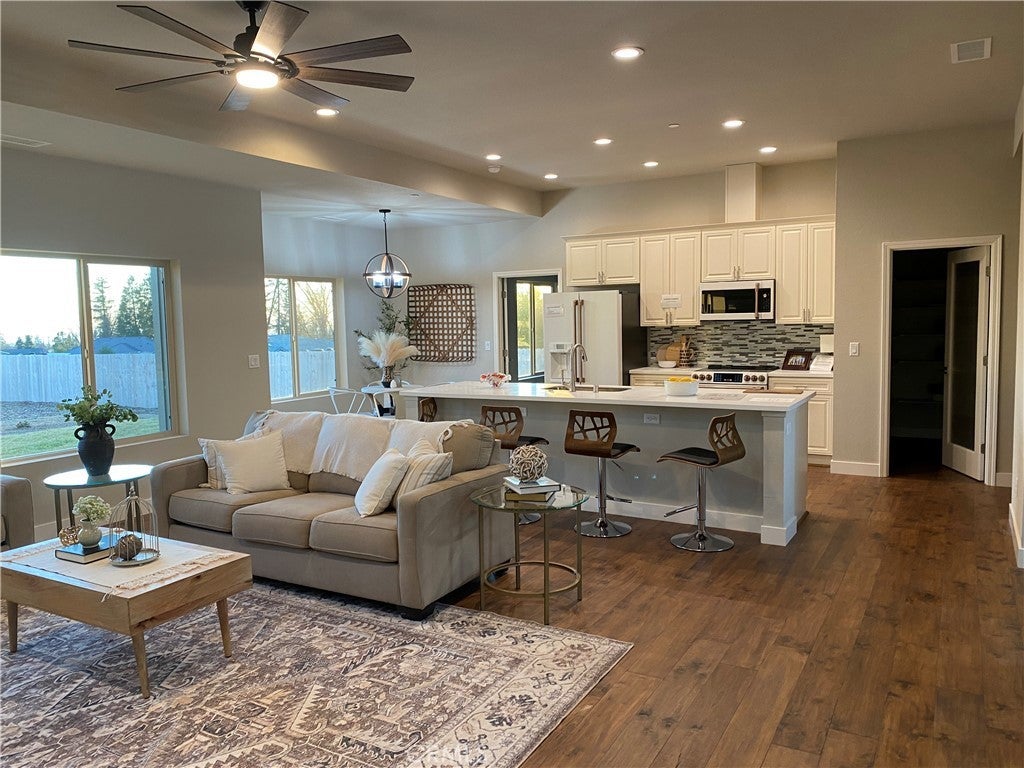 Brand New West-Side Paradise Home! Welcome to your dream home in Paradise’s highly sought Valley View neighborhood! Built by longtime local licensed contractor Harding Enterprises, well-known for their craftsmanship & commitment to building exceptional local homes. This brand new 1,829 sq. ft. residence is thoughtfully designed and loaded with quality upgrades—including an owned solar system for energy efficiency and long-term savings—that set it apart. Set on a spacious .39-acre lot and generously set back from the street, the home makes a lasting first impression with its attractive landscaping, oversized driveway, and excellent curb appeal. The placement not only enhances the home’s welcoming presence but also provides added privacy and tranquility. Inside, the split-bedroom floorplan offers privacy and flow, enhanced by real wood flooring, ceiling fans, and stylish fixtures throughout. The gourmet kitchen is a centerpiece, featuring Café by GE appliances including a refrigerator with hot & cold-water dispenser, 2-drawer dishwasher, double oven, and a walk-in pantry for ample storage. A custom media cabinet with fiber service ensures today’s tech needs are met. The luxurious primary suite is a private retreat, showcasing a spa-like en-suite bathroom with an oversized walk-in shower, dual sink vanity, and a generous walk-in closet—perfect for comfort and convenience. Notable features include: • Owned solar system for energy savings and sustainability • Mitsubishi inverter-driven heat pump for efficient heating & cooling • Extra insulation for comfort and energy savings • Upgraded front door with Kwikset smart lock • Attached 2-car garage with epoxy-finished floor • Oversized concrete driveway • Room for RV parking • Wide concrete walkways and concrete rear patio • Attractively landscaped yard, ready to enjoy With its unbeatable location, high-quality finishes, and the trusted craftsmanship of Harding Enterprises, this new construction home offers the best of Paradise living—style, comfort, and peace of mind. Don’t miss the chance to own this stunning new home in one of Paradise’s most desirable neighborhoods—schedule your private tour today!