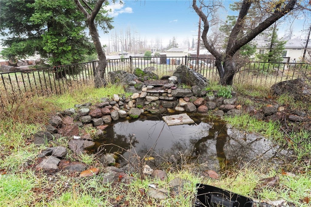 Prime location within the very popular Malibu Estates neighborhood. This half acre lot is mostly flat with a massive building site for a future home. Toward the back of the property, there is an existing pool and a sizable concrete patio. There is also a water fountain feature with a mini pond and walking trail that wraps around the perimeter of the yard. The 4 bedroom, 3 bathroom, 2413 SF home that was lost in the Camp Fire may have building credits available, please inquire with the Town of Paradise Building Department.