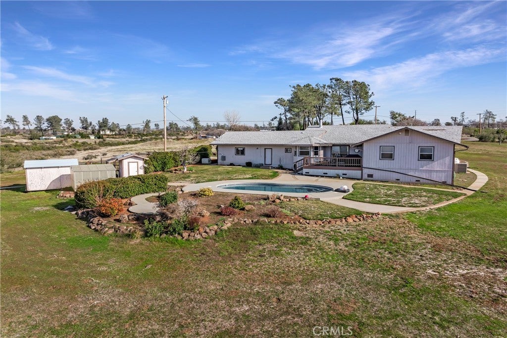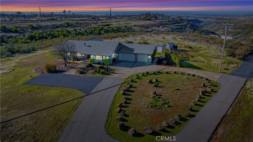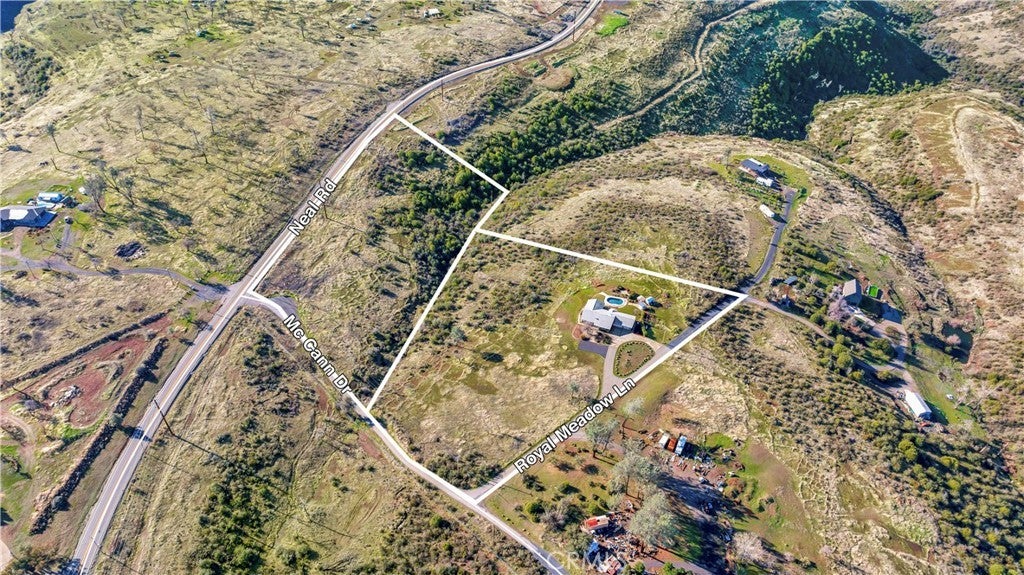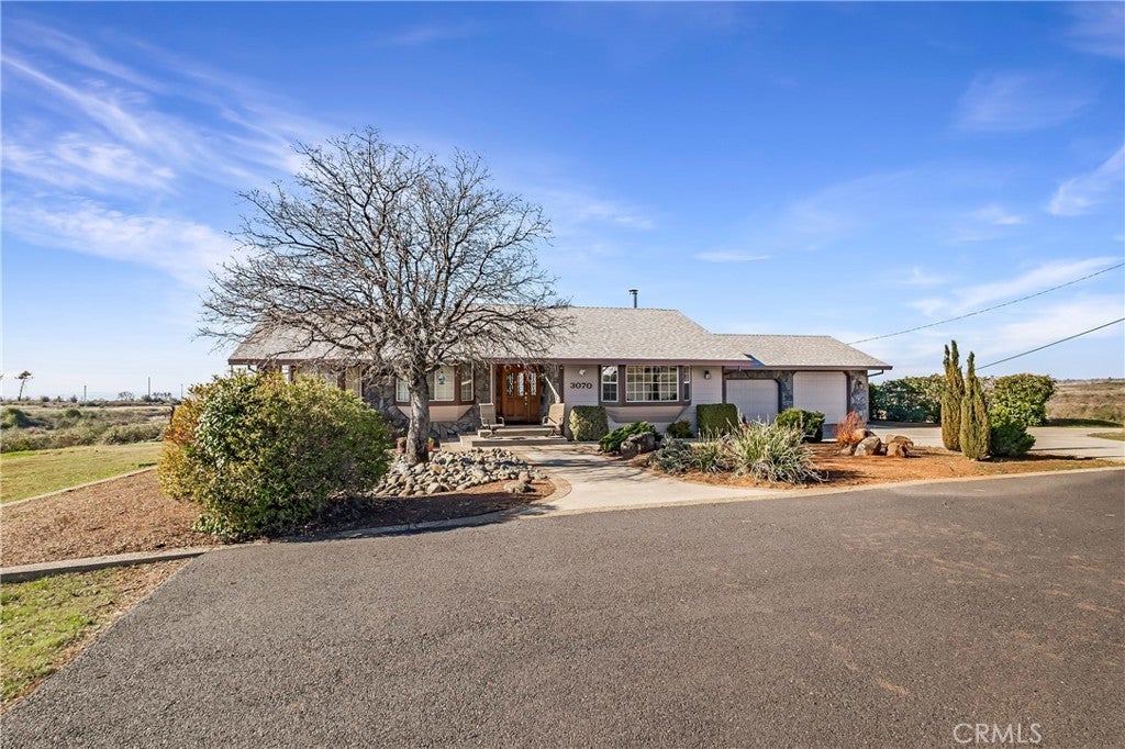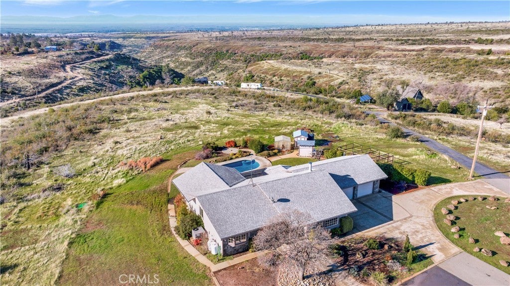 Fantastic Lower Paradise Location for this 15 ACRE property. VIEWS of Chico, Sutter Buttes and the Coastal Mountain Range! Have amazing views every day! Looking for space then this is it! Tons of flat area for a SHOP, ADU or both! This 1990 built home offers 3 bedrooms plus office, 2 baths, 3 car garage with 1/2 bath and third bay garage door being extra tall! There is also an in-ground POOL with incredible views!!! New interior paint, Mannington laminate flooring, Marquis carpet with #8 Pad, bathroom faucets, toilets, garage, kitchen and security lights, GE range, LG front load washer and dryer, Pool Pump, booster pump, filter and safety drains, chimney cleaned, and spark screen replaced. The home offers a large living room with vaulted knotty pine tongue & groove ceiling, bay picture window and a floor to ceiling rock hearth with a free-standing Schrader Wood Stove. Off the living room is the dining area & kitchen. The kitchen offers tons of cabinets, solid surface counter tops, breakfast nook, 7' eating bar and tiled floors. Down the hallway are built in cabinets, spacious guest bedrooms and the office. The primary bedroom has vaulted knotty pine tongue & groove ceilings, views of the valley and a slider to the back deck. The primary bath has dual sink vanity with tiled counters and a tiled step in shower. The guest bath offers tiled counters and a tiled tub/shower combination. There is a cummings back up generator system. The well has a 1000 gallon holding tank. The home is on 9.89 acres and this property is including another undeveloped separate 5 acre property that runs on the south property line. Very close commute to Chico! Landscape in front and back yard. One Year Home Warranty for the next 14 months transferable. This property is ready for a new owner. Video link https://vimeo.com/1058227001?share=copy.