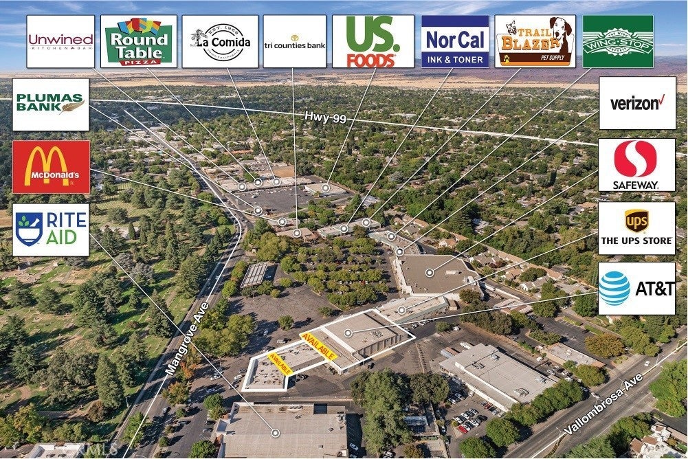 In-line retail space in the Safeway anchored shopping center on Mangrove Avenue, an established and strong performing center located in central Chico. Easily accessible with strong traffic counts (23,000 ADT), prominent signage, and ample parking. This center is surrounded by dense residential developments, within 1 mile of Hwy 99, and within 1 mile of CSU Chico (14,500 students), Chico Junior High School, and Hooker Oak Elementary School.