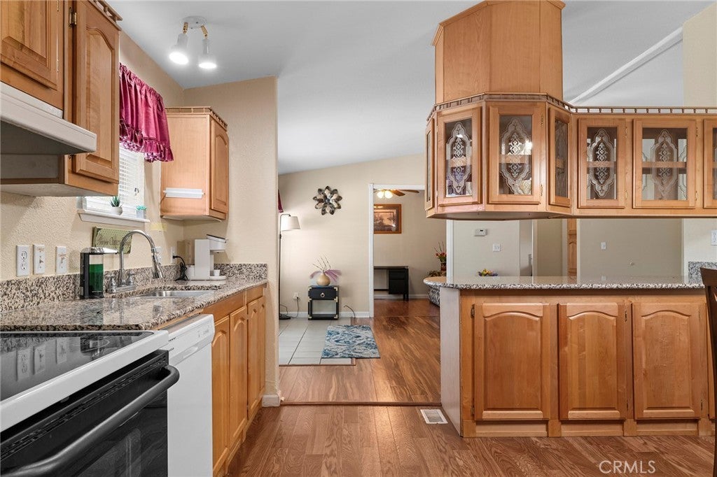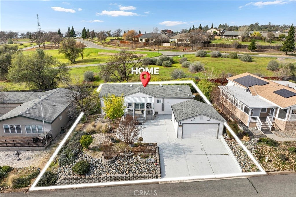 Tucked near the beauty and recreation of Lake Oroville, this well-maintained 3 bedroom, 2 bath manufactured home offers comfort, space, and functionality in a peaceful setting. Vaulted ceilings and large windows fill the home with natural light, creating an open and airy feel while showcasing views of the surrounding foothills and mature trees across the street. The open-concept layout flows seamlessly from the living area into the kitchen, which features granite countertops, glass front cabinetry, and ample storage perfect for everyday living or entertaining. The private primary suite includes a spacious walk through closet, soaking tub, and separate shower, offering a relaxing retreat at the end of the day. Two additional bedrooms also feature walk-in closets. Enjoy the convenience of an indoor laundry room with extra storage, plus ceiling fans throughout for added comfort. Step outside to covered front and back decks, ideal for enjoying the peaceful outdoor setting year round. A large detached two car garage with built-in cabinets provides excellent storage and workspace. Located just minutes from Lake Oroville, hiking trails, fishing, and camping, this home offers the perfect blend of comfort, functionality, and outdoor lifestyle. Come take a look and see all this property has to offer!