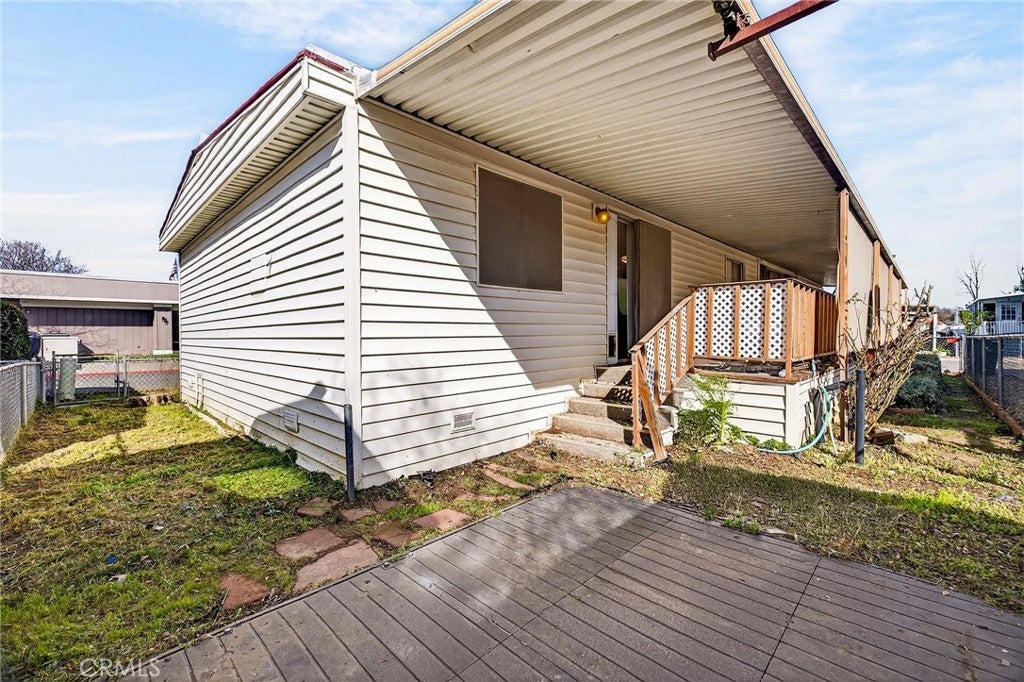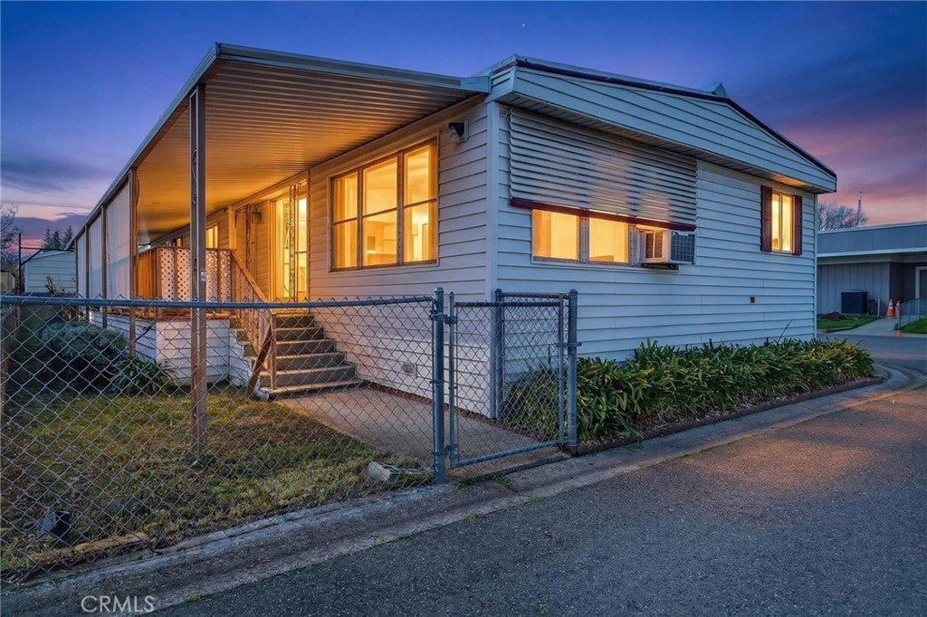 Yes! Only $26,000 for Unit 108 in Casa de Flores - Chico’s favorite 55+ adult community - perfectly positioned directly across from the clubhouse and the pool/spa complex for effortless access to the amenities and the community’s social hub. What an incredible find: approximately 1,440 sq ft of living space with new laminate flooring and fresh interior paint for only $26,000!! The value is hard to beat - and with a little additional work required, this one could truly become a gem. Inside, you’ll find a spacious double-wide with classic character and modern updates already started. A welcoming double-door entry opens to warm wood accents and built-ins that add charm and function. The space is designed for comfort and privacy with a split-bedroom floor plan, placing the primary suite on one end and two additional guest rooms on the other. You’ll also appreciate indoor laundry, updated toilets in both bathrooms, and a refreshed kitchen featuring new lower cabinets, new countertops, and a new gas range. Additional big-ticket improvements include a main home electrical panel already in place. Step outside to the covered wood deck with sunshade - ideal for relaxing or entertaining - plus a fully fenced space that’s perfect for those with pets. Cash sale only due to central heat/air not functioning. Casa de Flores is a well-loved 55+ community where you can enjoy a vibrant clubhouse scene - from potlucks to painting classes and line dancing, there’s something for everyone if you choose to socialize - plus an inviting in-ground pool and spa. Conveniently located near Chico shopping, dining, and everyday services. If you’re looking for an affordable option in a spacious double-wide with modern upgrades already started, Unit 108 could be a great fit. Call your favorite REALTOR® today to schedule a tour.