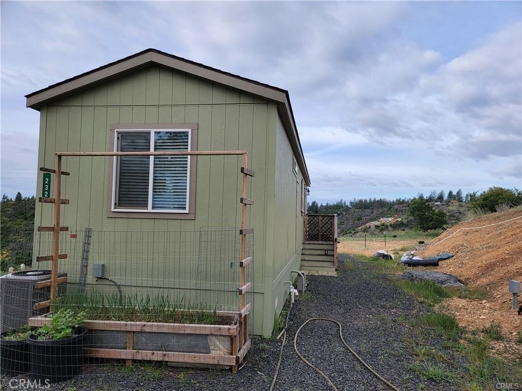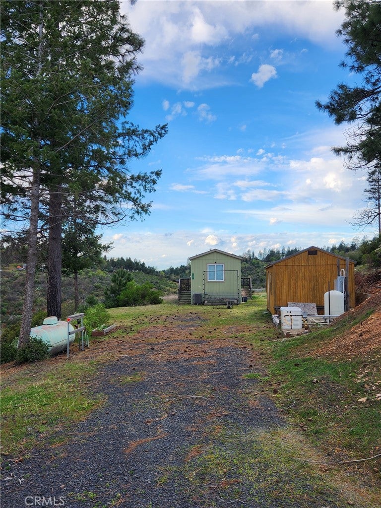 Do you enjoy views of the mountains and fresh air? Then this little 1 bedroom bungalow is the place for you. Enjoy off-grid life in this 1 bedrom 1 bath newer manufactured home on top of the mountain. Propane and generator and well make you self sustaining so you don't have to worry about pesky PG&E shut - offs and monthly bills. Have lots of toys? Enjoy 2 large outbuildings to turn in to a shop or finish off for extra living! Another flat area that could be used to build a site built home is also on the property or have a large garden.