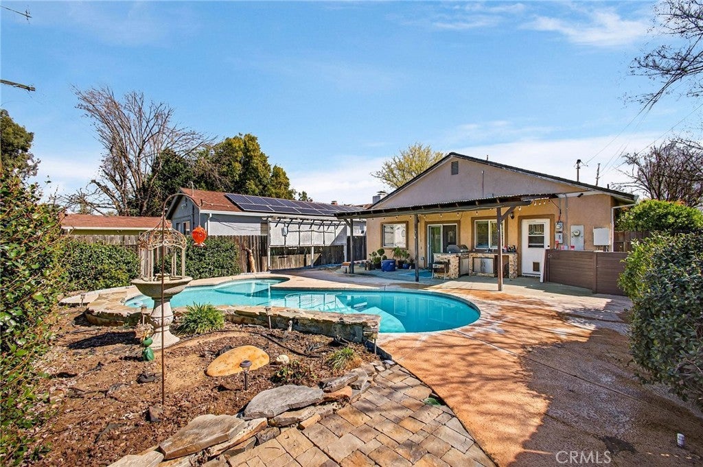 Welcome to this spacious 4 bedroom, 2 bathroom home in the heart of Willows offering 1,956 sq ft of comfortable living space and a layout designed for both everyday living and entertaining. Situated on an end lot, the property features mature landscaping that provides charm, shade, and curb appeal. Inside, you’ll find durable wood laminate flooring, a dedicated laundry room, and an abundance of built-ins and storage throughout the home. The spacious kitchen is a central gathering place, complete with a breakfast bar and plenty of counter space for cooking and entertaining. Step outside to your own backyard retreat featuring an in-ground pool and a fully equipped outdoor kitchen—perfect for summer gatherings and relaxing evenings at home. The property also includes a 3-car garage and leased solar to help with energy efficiency. With its generous size, thoughtful features, and great outdoor amenities, this home offers the perfect blend of comfort, functionality, and California living.