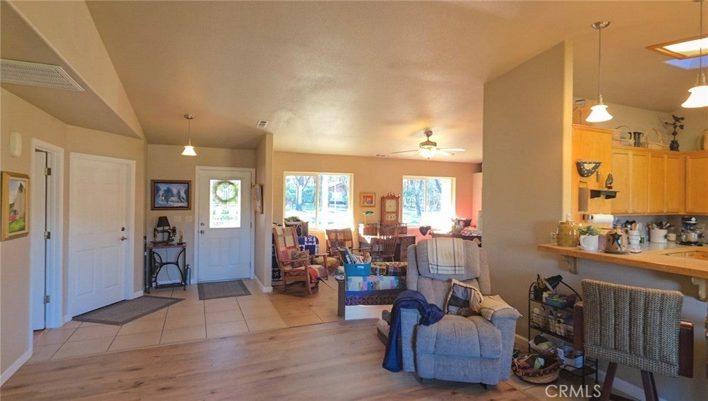 Breakfast Bar, Ceiling Fan(s), Separate/Formal Dining Room, Eat-in Kitchen, High Ceilings, Open Floorplan, All Bedrooms Down, Entrance Foyer, Primary Suite