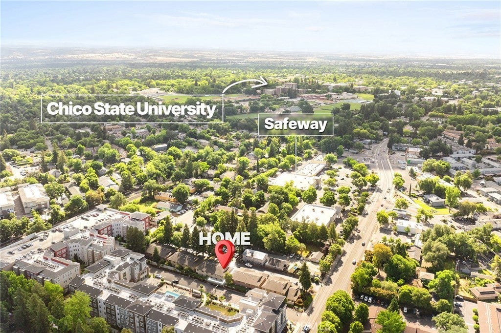 Looking for a smart investment or a place to call home while attending Chico State? This updated ground-level condo offers both convenience and long-term potential in a gated community just minutes from campus, downtown Chico, and everyday amenities. Positioned as a bottom-end unit, the home provides easy access and a comfortable layout with an open living space that flows naturally into the kitchen. Updated LVP flooring runs throughout the main living areas, while fresh interior paint and updated appliances give the home a clean, move-in ready feel. Granite countertops complete the kitchen, and the functional design makes everyday living simple. Just off the kitchen and dining area, you’ll find one bedroom and a nearby hall bathroom, offering flexibility for guests or roommates. Down the hall, two additional bedrooms are positioned toward the end of the layout, including one with its own en-suite bathroom, creating a more private living arrangement. A stackable washer and dryer adds everyday convenience and strong rental appeal. The gated community offers a pool, controlled access, and bike racks throughout the complex, making it especially well-suited for students or tenants looking for ease of living and proximity to everything Chico has to offer. Whether you’re a parent looking to invest while your student is in school, or someone ready to start building a real estate portfolio, this property presents a practical opportunity in a highly convenient location.