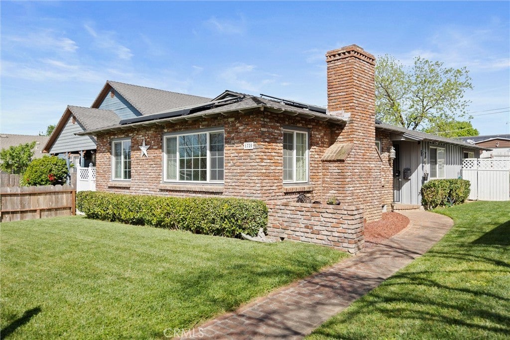 Welcome to this thoughtfully updated 3-bedroom, 1 bath home, offering 1,366 square feet of charm and modern comfort. Built in 1954, this residence effortlessly blends classic character with stylish upgrades throughout. Step inside to discover rich hardwood flooring, tile accents, and a beautifully renovated bathroom designed with both function and elegance. Sunlight pours through numerous windows, creating a bright and inviting atmosphere that enhances every space. The living room serves as the heart of the home, featuring a classic brick fireplace, expansive natural light, and serene views of the yard—perfect for both quiet evenings and lively gatherings. The kitchen offers an open, practical layout with a convenient bar area, ideal for casual dining or entertaining. Outdoors, the property truly shines. Lush, mature landscaping frames both the front and back yards, complemented by a charming brick entry, peaceful patio area, and inviting walkways—creating a private oasis for relaxation or hosting. A detached garage with alley access, ample off-street parking, and room for multiple vehicles add to the home’s versatility. Additional features include leased solar for energy efficiency, a welcoming white vinyl picket fence in the front, and privacy fencing in the rear—offering both curb appeal and seclusion. A rare blend of character, comfort, and convenience—this is one you don't want to miss.
