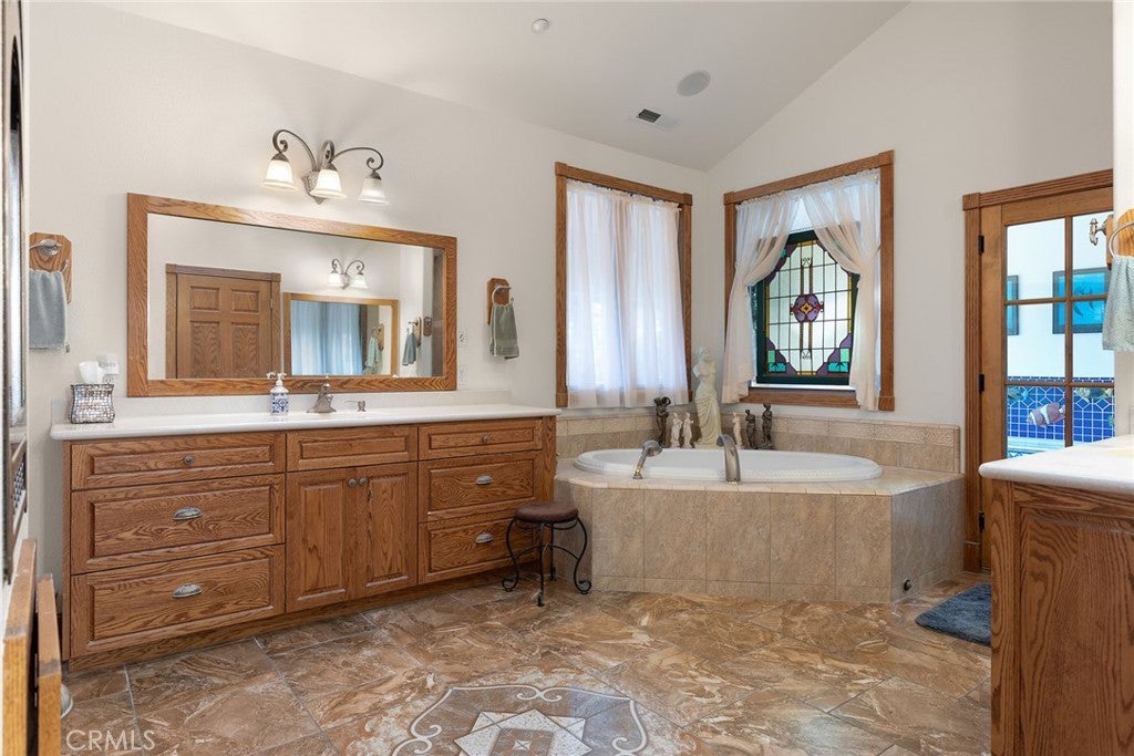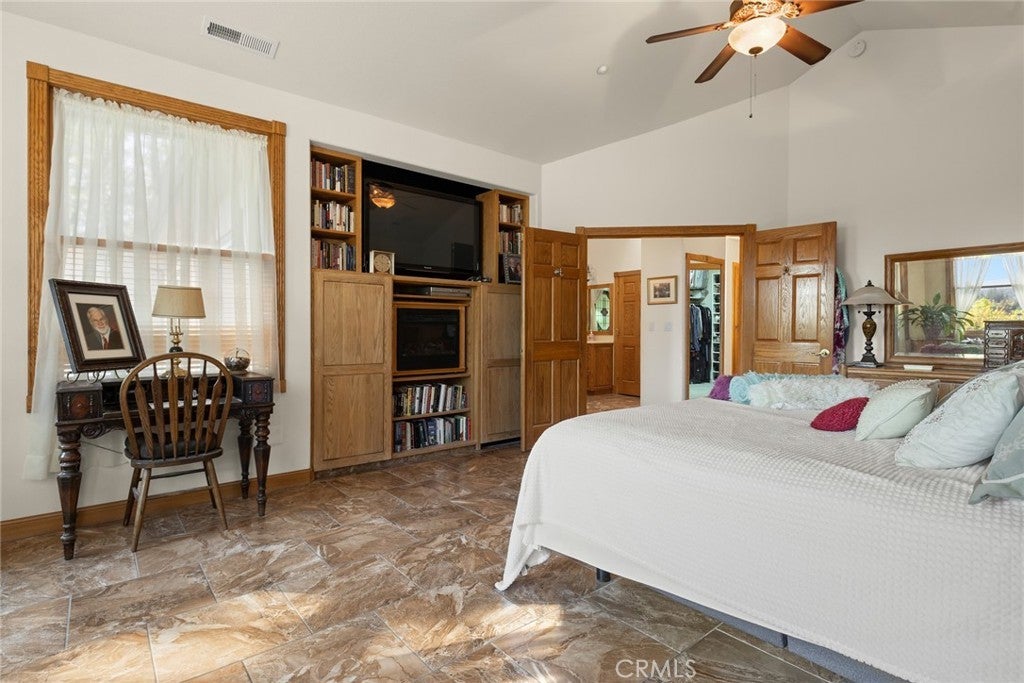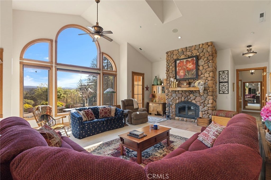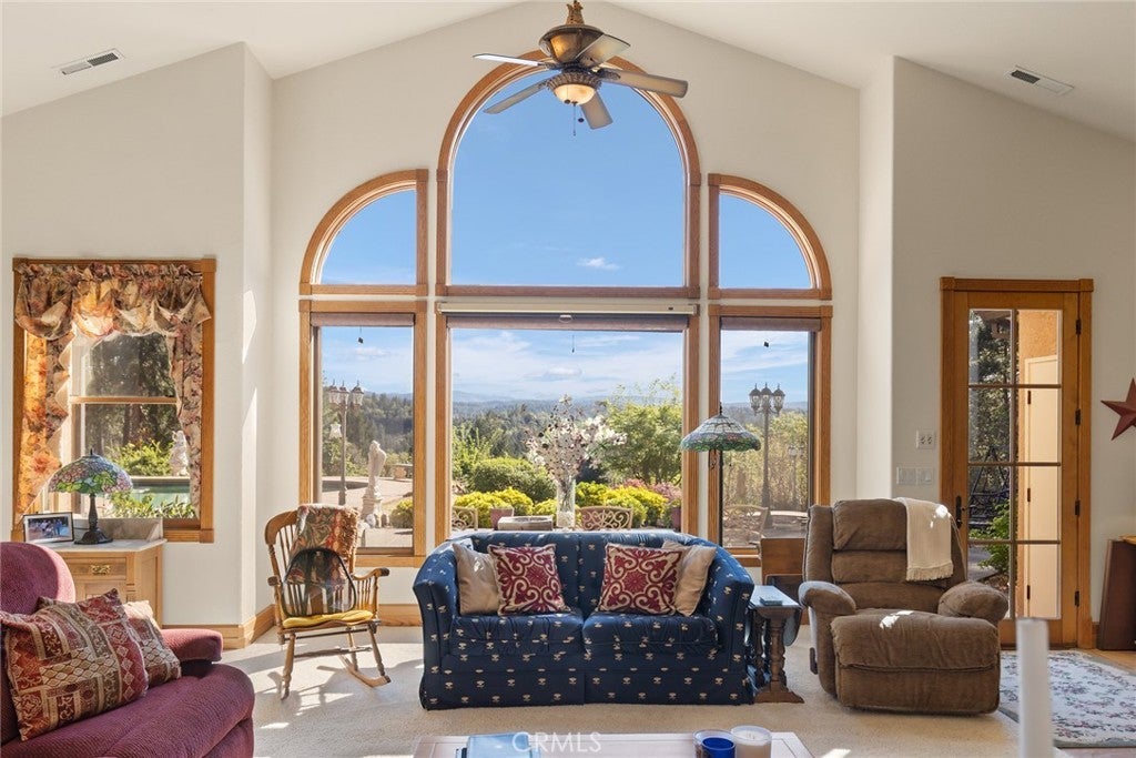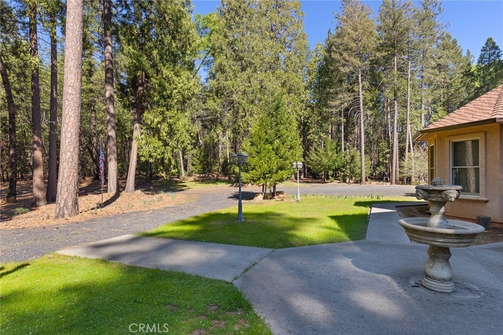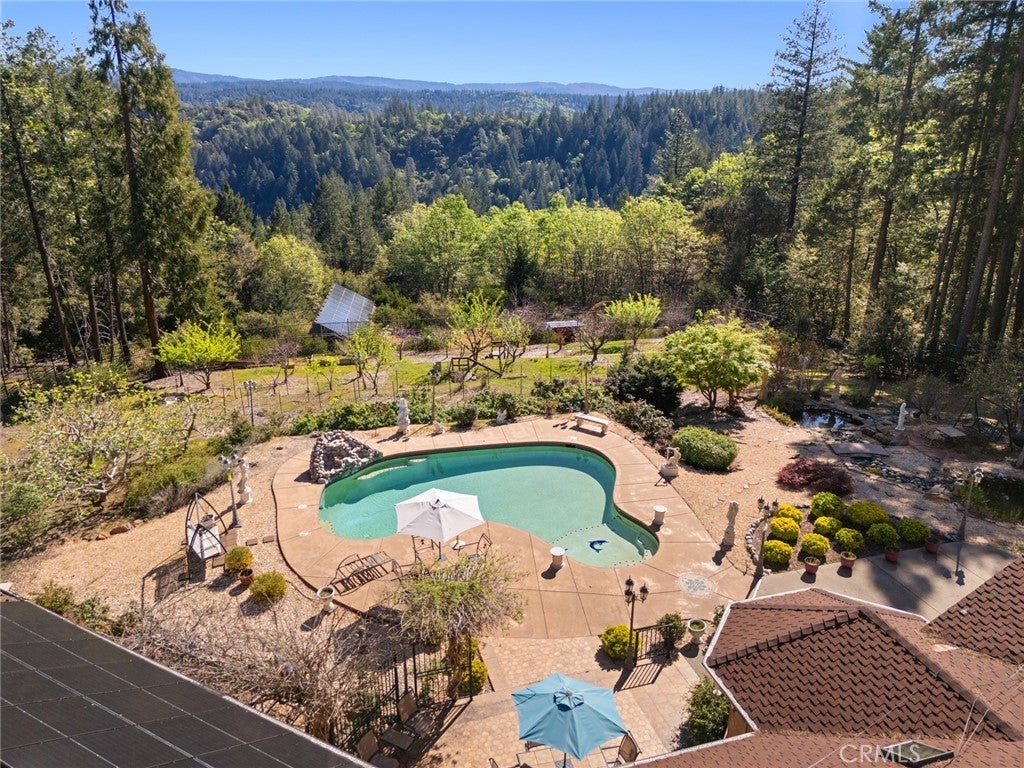 Nestled among the towering pines of Forest Ranch, this extraordinary estate showcases breathtaking views and an unmatched sense of serenity. Set on 23 private acres, the property boasts a sparkling in-ground pool, owned solar, & an expansive four-car garage—just the beginning of what this remarkable retreat offers. Step inside to soaring 23-foot cathedral ceilings & an abundance of windows that perfectly frame the picturesque surroundings. The great room is both inviting and impressive, featuring skylights, a stunning stone fireplace, & ample space for entertaining or cozy evenings at home. Just off the main living area, a versatile den offers endless possibilities—whether a home office, game room, or additional lounge space. Elevate your culinary experience in the thoughtfully designed gourmet kitchen, complete with Brazilian cherry hardwood floors, Corian countertops, cherry wood cabinetry, white tile backsplash, a gas range, a center island with a vegetable sink, & an expansive walk-in pantry with shelving and freezer space. The sunlit breakfast nook provides the perfect setting to enjoy your morning coffee while taking in the tranquil views. The luxurious primary suite is a private sanctuary designed for comfort & relaxation, featuring elegant tile flooring, custom oak built-ins, & a spa-inspired en suite bath with dual vanities, a soaking tub, walk-in shower, spacious closet, linen storage, grooming area, & bidet-equipped toilet. What truly sets this home apart is the indoor endless pool for year-round swimming and fitness. Additional highlights include three guest bedrooms, ceiling fans throughout, recessed lighting, dual HVAC systems, & an indoor laundry room with oak cabinetry and a utility sink. Outdoors, enjoy a beautifully designed in-ground pool, expansive patio, fully fenced backyard, hot tub, firewood storage building, & two serene koi ponds with a cascading waterfall. Fruit trees dot the landscape, and with 23 acres, there is endless opportunity to expand and make it your own. The property is accessed via a gated entrance shared with neighboring homes, adding privacy and security. Offering a rare blend of comfort and beauty, this exceptional property is truly one you don’t want to miss.