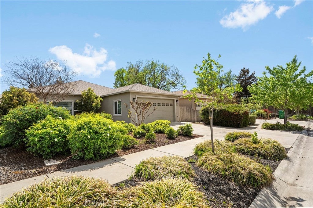 Looking for the comfort and feel of a newer build without the wait? 215 Danielson Ln. was thoughtfully designed to offer exactly that, a 3-bedroom, 2-bathroom home with 1,446 sq. ft. of comfortable living space, built in 2018 and designed for modern, easy living. Tucked away on a quiet cul-de-sac in Chico, the setting offers both privacy and convenience, with quick access to local amenities. Inside, the home opens to a bright, airy space where the living, dining, and kitchen areas connect seamlessly, creating a natural flow that feels both comfortable and inviting. Brand new quality laminate flooring runs throughout the main living areas, complementing the open layout that makes gathering and everyday living effortless. The kitchen is designed with both style and function in mind, offering granite countertops, stainless steel appliances, a pantry closet, and an abundance of cabinetry that keeps everything organized and within reach. The layout continues down the hall, where a dedicated laundry room with garage access adds everyday convenience. A secondary hallway creates a sense of separation, with two well-sized guest bedrooms and a full bathroom thoughtfully positioned together, while the primary suite is set apart for added privacy. The primary bedroom offers a spacious retreat with elevated ceilings, direct access to the backyard, and an en-suite bath featuring dual sinks, granite countertops, generous storage, and a walk-in closet. Outside, the backyard is designed for easy enjoyment with a covered concrete patio and an additional paver patio, creating multiple spaces to relax, dine, or unwind in the quiet surroundings. Both the front and backyard are low maintenance, allowing you to spend more time enjoying the home and less time on upkeep. Energy-efficient features and thoughtful upgrades include Alpine windows, a pilotless ignition gas furnace, upgraded insulation with R-49 in the ceiling and R-23 in the walls, a tankless water heater, whole house fan, and extensive storage throughout. Whether you’re looking for a comfortable place to call home or a well-located investment opportunity, this property offers a balance of modern convenience, thoughtful design, and everyday functionality.