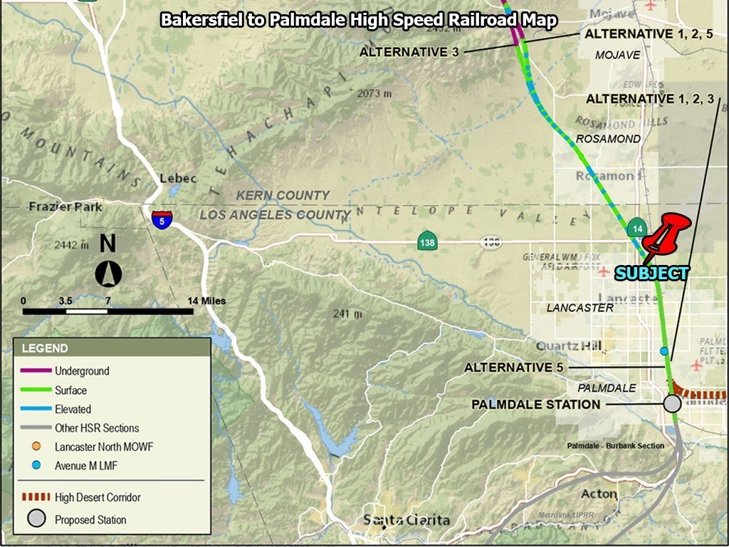 2.35+/- acres flat land on paved Ave. F Zoned LCD22*. The property is located close/next to the Bakersfield to Palmdale High-Speed rail project which connects the Central Valley to the Antelope Valley with an approximately 25-minute high-speed rail trip. Property is located in the General William J. Fox Airfield Specific Plan which is in one of three areas designated by Lancaster for Cannabis Industry-Grower, Nursery operator, manufacturer, R & D, or Distribution. Hwy. 14 on/off ramps are within eyesight!!! Less than five minutes drive to Downtown Lancaster. You may google the following GPS coordinates to locate the property: 34.748384 -118.155123
