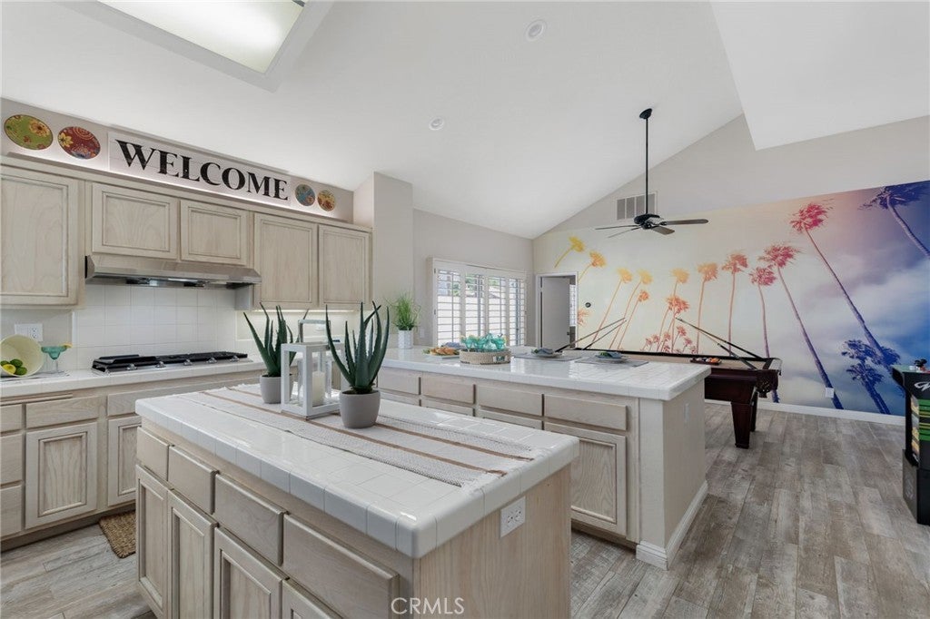Wet Bar, Ceiling Fan(s), Cathedral Ceiling(s), Separate/Formal Dining Room, Eat-in Kitchen, Furnished, Recessed Lighting, Storage, Tile Counters, Bedroom on Main Level, Main Level Primary, Primary Suite, Walk-In Closet(s)