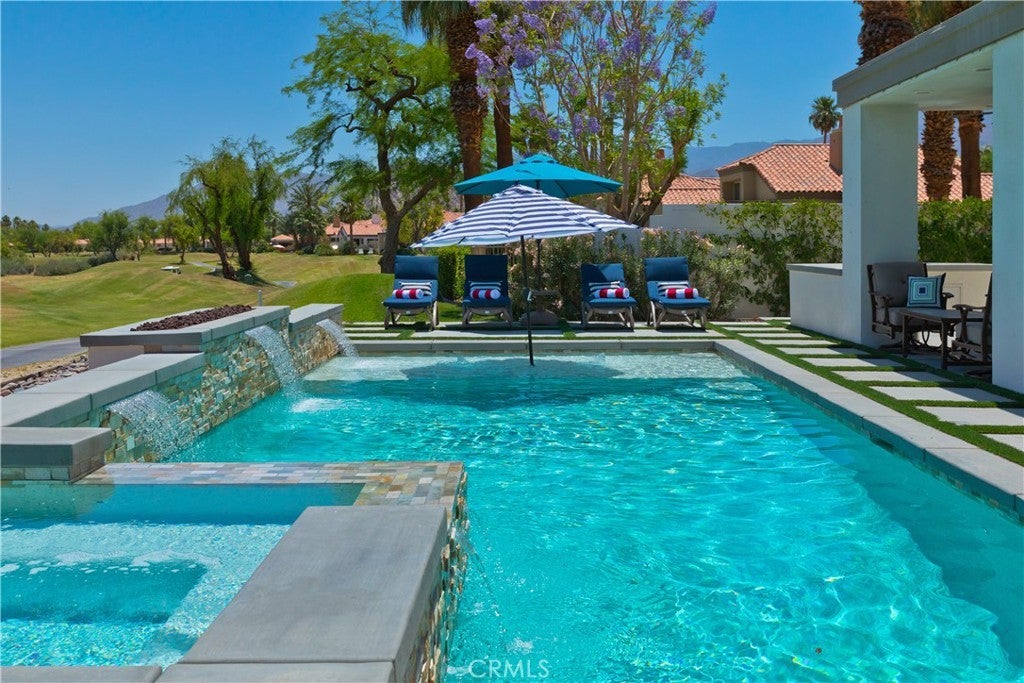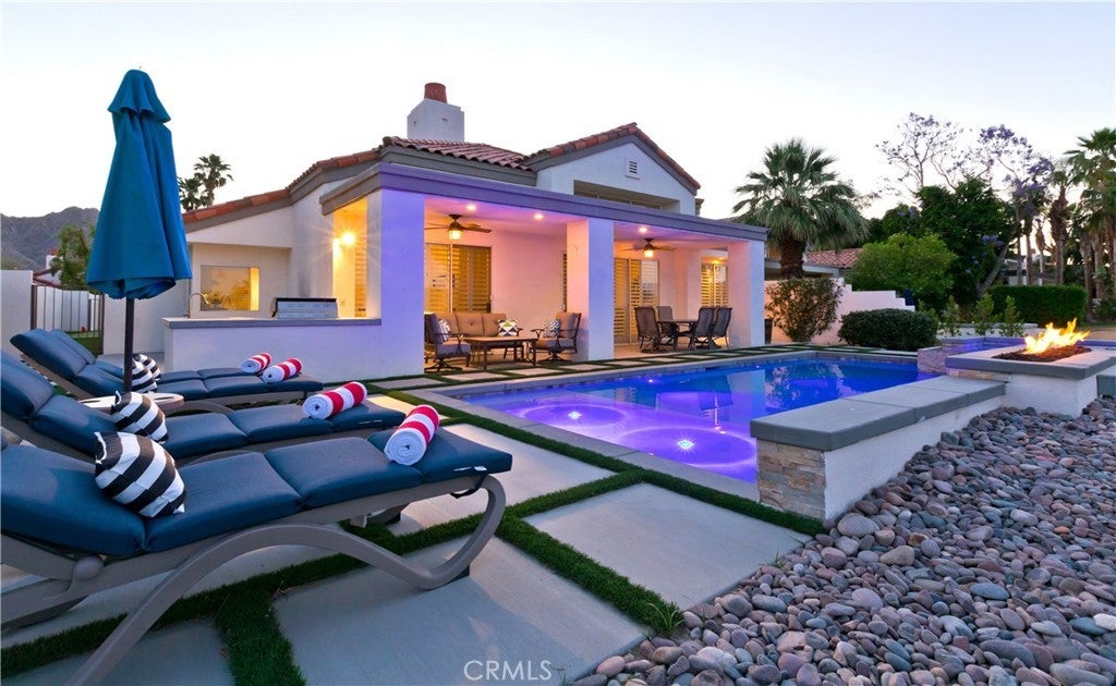 Nestled on the 8th fairway of the famous Jack Nicklaus Private Course of PGA West is our newly remodeled Casa Havana, a stunning 3,000 sq. ft. Contemporary Estate perfect for entertainment and relaxation. The professionally designed Casa Havana features 4 bedrooms, 5 bathrooms (each with a private en suite), a brand new pool and spa with 3 unique waterfalls, and a fire pit. The pool includes a tanning shelf with colored bubblers for all ages. Enjoy sunset dinners with the built-in stainless steel BBQ and sink. A full 3-hole putting green stretches across the property. With custom white-washed Brazilian wood floors and Spanish-style exterior ceiling fans, this home stands out in the enclave of 75 golf course homes within PGA West. Stainless steel appliances, en suite bathrooms, and 65'' flat-paneled high-definition TVs with Netflix complete the upgrades. Relax on the extensive patio with a custom-built mister system and enjoy wireless internet coverage throughout the property. The 20-foot vaulted ceilings in the living room add to the memorable experience. SPECIAL AMENITIES: -BRAND NEW Private Pool & Jacuzzi with Colored LED Lights, Waterfalls, and Bubblers -BRAND NEW AC Units throughout the property -Unique pool tanning shelf with 2 color bubblers -Stainless Steel Deluxe Built-In BBQ and Sink -Misting System in Patio & Gardens -Billiard Pool Table -Foosball Table -Multi Game Classic Arcade machine -4 Sun Lounging Chairs -Pool Toys Available (Upon Request) -Stainless Steel Appliances -Covered Patio with Upholstered Seating -6 HD LED Flat Screen TVs -ROKU TV (Netflix + Amazon Prime) & Extended WIFI -PGA West Golf Courses (3 Public & 3 Private) -Complimentary Collection of Bikes -BONUS: Free Passes to the LA Quinta Wellness and Fitness Center (4 miles) This is a furnished vacation rental available year-round, with rates varying per month.