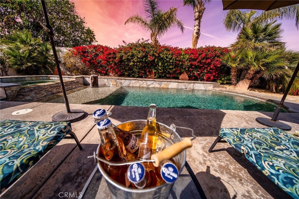 RATES VARY BY MONTH! Indulge in the ultimate vacation experience at 40879 Sandpiper Court, a hidden gem nestled in Palm Desert, California. This exquisite single-story home awaits you in a peaceful cul-de-sac, offering 4 bedrooms, 4 bathrooms, and over 2,990 square feet of pure luxury. Step inside and be captivated by the inviting ambiance of the spacious living room. With vaulted ceilings, a cozy fireplace, and an abundance of natural light pouring through large windows, this is the perfect space to relax and unwind. The open-concept design seamlessly connects the living room to the dining area and a modern kitchen boasting granite counter tops and ample cabinet space. Retreat to the serene primary bedroom suite, featuring a sizable walk-in closet and an en suite bathroom with dual sinks, a soaking tub, and a separate shower. Two additional well-appointed bedrooms with ensuite updated bathrooms, while the fourth bedroom offers versatility with full-sized bunk beds and a convenient desk area. Outside, a private oasis awaits you. The backyard beckons with a covered patio, lush landscaping, and a sparkling pool and spa, ideal for cooling off on warm days or indulging in evening relaxation. The special waterfall feature and cozy fire pit add a touch of tranquility and warmth to your outdoor experience. With a 2-car attached garage and a laundry room, convenience is at your fingertips. Located in the desirable Palm Desert neighborhood, this stunning property places you just moments away from the renowned shopping, dining, and entertainment options of El Paseo. Whether you seek relaxation or exploration, this vacation retreat is perfectly positioned to cater to your every desire. Experience the epitome of Palm Desert living at 40879 Sandpiper Court. This exceptional property is available year-round, with rates varying per month. Don't miss the opportunity to create unforgettable memories in this luxurious getaway. Rates will vary by month. The price listed is for the lowest month of the year.