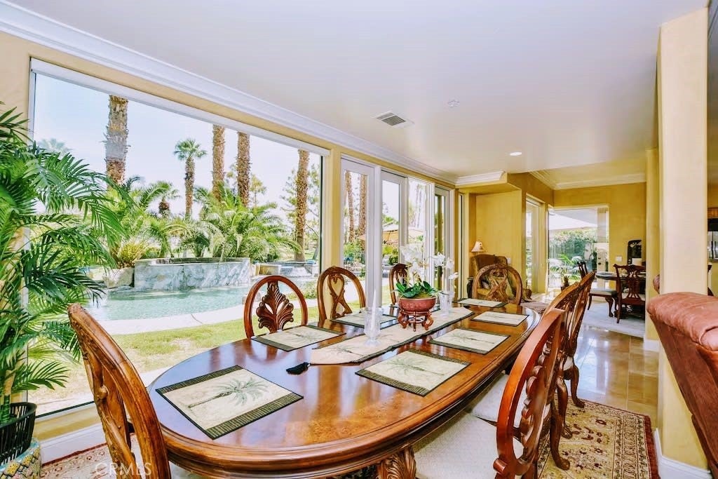 Rates may vary by month. Welcome to Casa Riviera, an exquisite 4,000 sq ft Contemporary Estate on the 9th hole of Jack Nicklaus Private Course at PGA West. Recently remodeled, this retreat features 5 bedrooms, 6 bathrooms, and a pool with waterfalls, lights, and a spa with a fire pit. Enjoy outdoor gatherings with a built-in stainless steel BBQ, sink, exterior shower & bathroom. The villa boasts elegant travertine floors and generous space. Indulge in upgraded amenities including stainless steel appliances, two master bedrooms with en suite bathrooms, and a spacious patio. Additional features include a private pool and jacuzzi, AC throughout, HD flat screen TVs, access to PGA West Golf Courses, extended WiFi, and more. Discover luxury at Casa Riviera. Experience your dream vacation in PGA West Resort, La Quinta. This remarkable home is a haven for golf enthusiasts with upscale furnishings, stainless steel appliances, a private pool, and a spa. The rooms provide ample comfort for a stylish getaway. Immerse yourself in the outdoor oasis. Relax on the patio, savoring drinks with picturesque golf course views. The pool offers luxury with its spa, waterfalls, baja shelf, and fire pit. With lounging chairs, soak up the sun. The deck has a built-in stainless steel gas BBQ, sink, and even an exterior shower and bathroom. The kitchen features stainless steel appliances, granite countertops, and a spacious island. The dining area seats eight. Elegant travertine tiles and area rugs adorn the property. There are two Master Suites, each with its own bathroom. The house has six HDTV flat screens. The master bedroom offers a king bed, en-suite bathroom with dual sinks, seamless door shower, and deep soak bathtub. Enjoy free WiFi throughout. For added enjoyment, there's a large pool with waterfalls and LED lights, a spa with a golf course view, sun lounging chairs, a full BBQ grill with a sink, and an exterior shower and bathroom with a bar for entertaining guests. The living room showcases floor-to-ceiling windows with breathtaking views of PGA West's golf course. In summary, this vacation home offers a prestigious location, luxurious amenities, and ample space for relaxation and entertainment, ensuring a truly memorable stay.