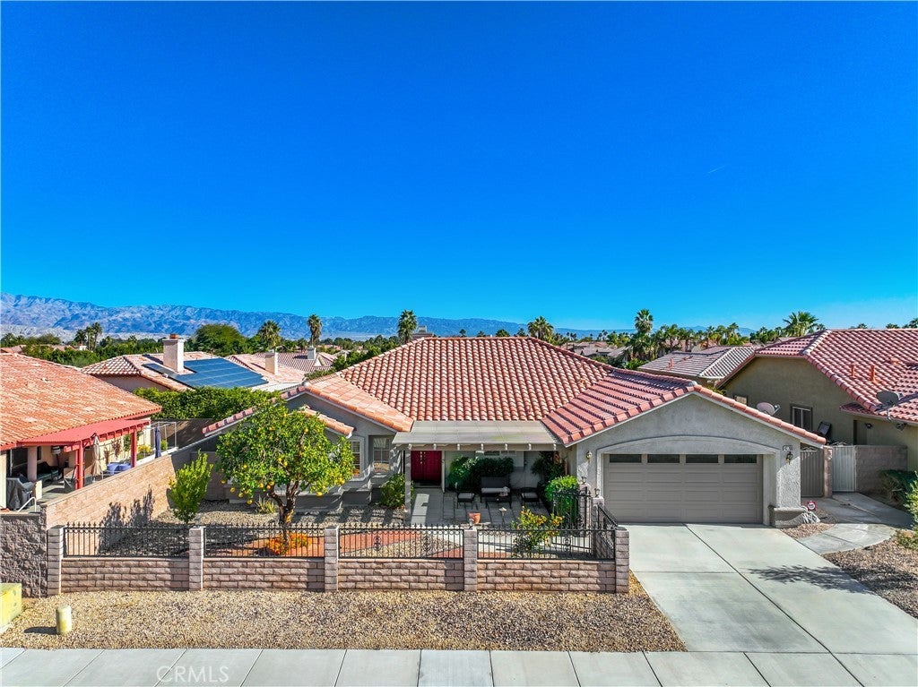 Rates vary by month. Available for 12 months. Explore this magnificent vacation rental, nestled in the highly desirable Bella Vista neighborhood of La Quinta. This spacious getaway spans an impressive 2,400 square feet and has recently undergone a complete transformation, featuring modern vinyl plank flooring, plush new carpeting, and a fresh interior paint makeover. Upon entering, you'll be welcomed by an inviting open floor plan, accentuated by soaring ceilings in the living area, complete with a cozy fireplace. The expansive, well-lit kitchen features a breakfast bar, gas cooktop, built-in double oven, and an abundance of custom wood cabinets. Adjacent to the kitchen, you'll find a full-sized laundry room with direct access to the garage, making daily tasks a breeze. The space is elegantly adorned with plantation shutters on the windows. Unwind in the spacious master suite, featuring a king-size bed and an ensuite bathroom with dual sinks, a sunken tub, separate shower stall, and a generous walk-in closet. Glass sliders open to a private patio, your personal oasis for morning coffee or evening relaxation. Two additional bedrooms offer queen-size beds and ample closet space, one conveniently flexible as an office/guestroom. Share a well-appointed hallway bathroom for complete comfort. The expansive, well-lit kitchen is a dream come true, featuring a breakfast bar, gas cooktop, built-in double oven, and an abundance of custom wood cabinets. Beyond the coffee maker, you'll find a Keurig with pods, along with an air fryer, espresso maker, panini press, juicer, and virtually every other gadget to whip up culinary masterpieces. A full-sized laundry room with direct garage access adds convenience to your stay. Step outside to the tranquil backyard, where you'll find an Aluma wood awning that extends across a significant portion of both the front and back of the property, providing shade and the perfect spot for outdoor enjoyment. The attached two-car garage comes equipped with numerous storage cabinets, ensuring ample space to keep everything organized during your vacation. Rates will vary by month. The price listed is for the lowest month of the year.