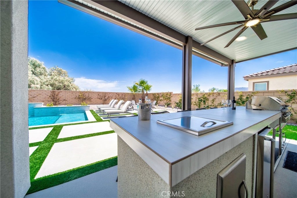 Imagine waking up to breathtaking mountain views from your expansive covered patio at Casa Aragon. This stunning 4-bedroom, 3-bathroom rental home in the desirable Cantera at Coral Mountain community offers the perfect blend of modern design, comfort, and desert vibes. Step inside and feel the openness. The seamlessly connected living area, dining area, and kitchen create a perfect space for entertaining friends or cozying up with family. Picture yourself whipping up delicious meals in the modern kitchen, then unwinding in the spacious living room where conversation flows effortlessly. After a day of exploring the desert adventures nearby, retreat to your luxurious primary bedroom. The spa-like shower and large walk-in closet melt away stress, creating your own private oasis. Three additional bedrooms offer a haven for family, guests, or even a dedicated home office, perfect for remote work with stunning mountain views as your backdrop. Unwind on your covered rear patio, a tranquil space to soak up the desert sunsets and stargaze at night. The fully fenced yard with a block wall provides privacy and security, perfect for creating your own desert oasis. Imagine barbeques with friends, al fresco dining, or simply relaxing with a good book while the desert breeze washes over you beside the luxurious pool. Casa Aragon resides within a gated community, offering peace of mind with secure entry. Explore the nearby hiking trails or enjoy convenient access to major highways for effortless commutes. Don't miss out on this chance to live the La Quinta dream Rates will vary by month. The price listed is for the lowest month of the year.
