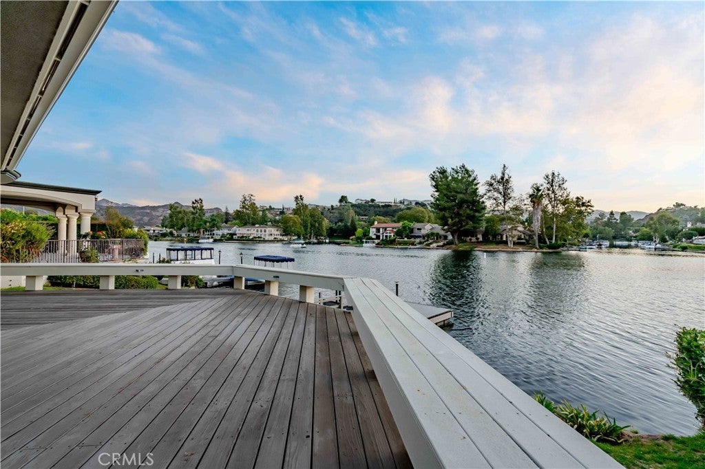 This luxurious single story is situated on the main channel within the prestigious Gated community of Westlake Island, an oasis of beauty and sophistication nestled in the heart of Westlake Village. Stepping into the home you are greeted with an abundance of natural light that floods every corner. This home offers comfortable living spaces that seamlessly integrate with the amazing outdoor entertaining areas creating the ultimate California indoor/outdoor lifestyle home. The kitchen provides stainless steel appliances with custom cabinetry opening to the dining area. The primary bedroom is equally impressive, with picturesque windows that showcase stunning lake & mountains views. The oversize spa like master bath boasts an abundance of closet and storage space. The secondary bedrooms are oversized with plenty of closet space. Walk out to your dock just steps from your patio and enjoy a sunset cruise or dinner at the landing or Boccaccio's on the water. 24 hour guard gated community on the island & conveniently located to all.