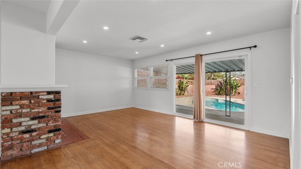 Welcome to 19349 Friar St! This delightful single-family home features 3 bedrooms and 2 bathrooms, nestled in the beautiful city of Tarzana. Situated on a quiet street, this pool home boasts hardwood flooring, a long driveway for ample parking, and elegant recessed lighting and ceiling fans throughout. As you enter, you'll be greeted by an inviting open floor plan in the living room, complete with a cozy brick fireplace. The kitchen is equipped with a newly installed dishwasher, a tankless water heater, a gas stovetop, oven, and plenty of storage space. Adjacent to the kitchen, the bright and airy dining area is perfect for enjoying meals. There is a convenient laundry area nearby. Two of the bedrooms include en-suite bathrooms—one featuring a shower-in-tub and the other a walk-in shower—while the third bedroom offers generous space for your personal touch. Outside, your backyard oasis offers a sparkling heated pool awaits, complemented by a covered patio, ideal for relaxation. Conveniently located near schools, parks, and restaurants, do not overlook this home!