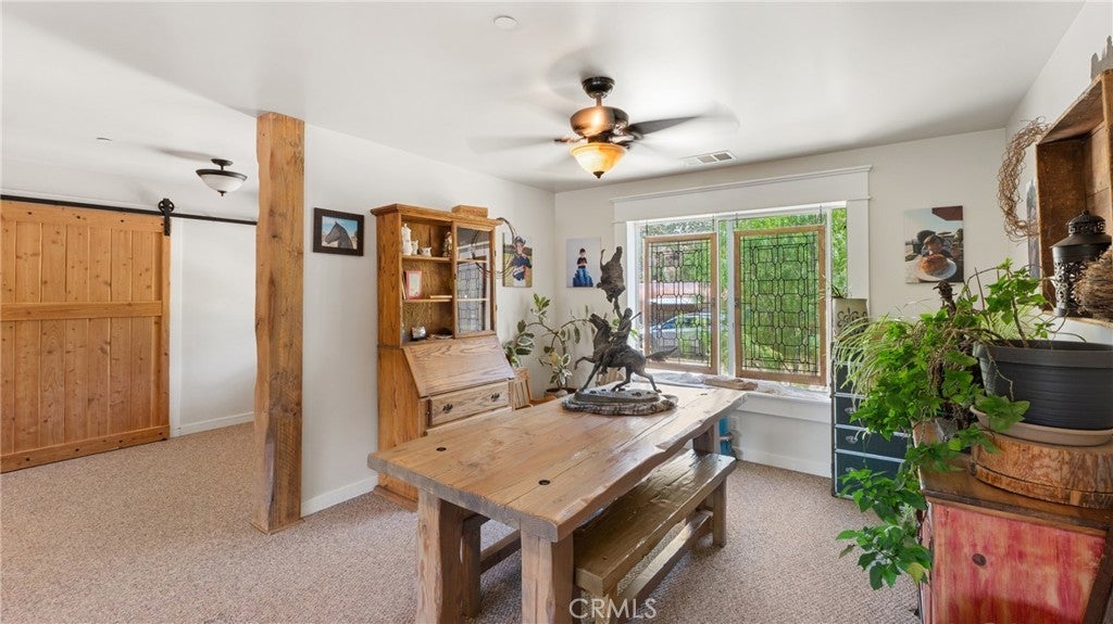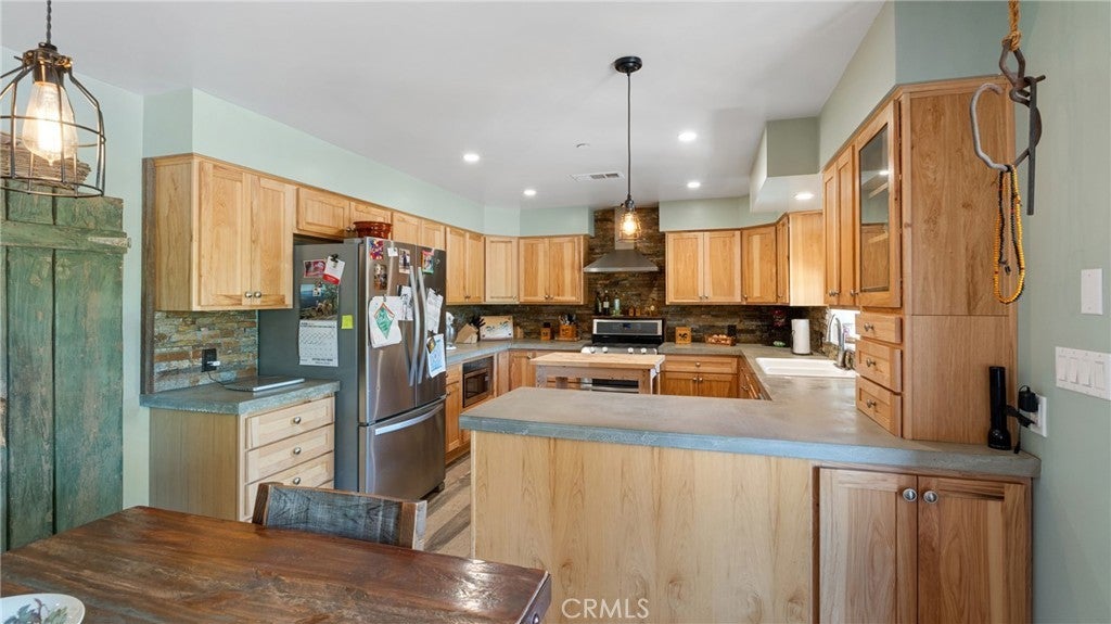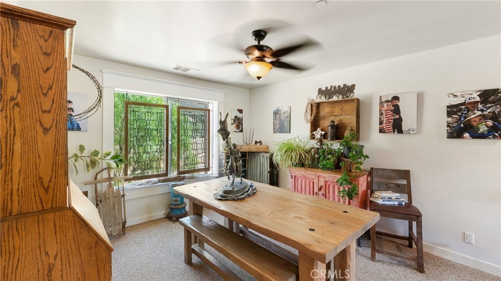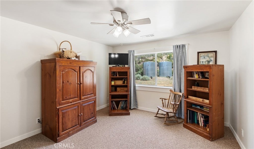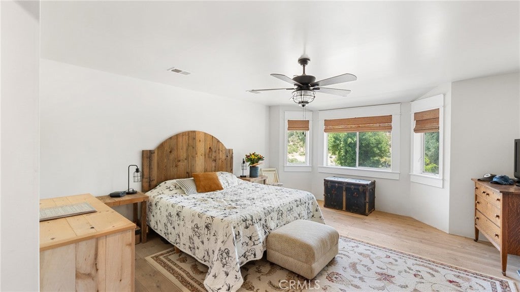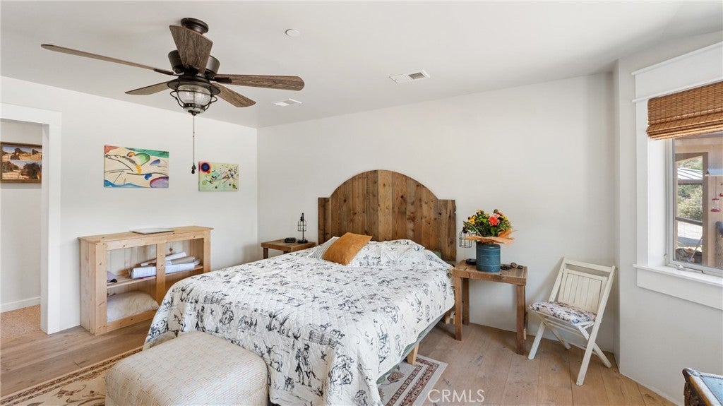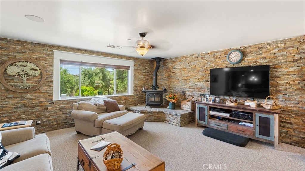 Nestled in the serene and picturesque landscape of Acton, this custom-built home from 2015 offers unparalleled privacy and breathtaking views across its expansive 11.51 acres. Designed with modern fire safety in mind, the property is equipped with an interior fire sprinkler system and a fire hydrant on the premises, ensuring peace of mind. Additionally, two 7,500-gallon water tanks provide ample water supply for emergencies. The dual glazed tempered windows further enhance the home's safety features. This 2,238 sq. ft. residence boasts rustic elegance with Douglas fir post and beam accents. The spacious living room features a stack stone wood-burning fireplace with a hearth, perfect for cozy evenings. The kitchen is a chef's dream, complete with custom concrete countertops, under-cabinet lighting, custom cabinets with pull-outs, and a pantry with a charming barn door. The primary bedroom is a sanctuary with French white oak flooring and a private bath featuring a garden tub and a stall shower with tiled accents. Additional amenities include a private dining room, a laundry room with ample storage, and an attached 2-car garage with a work area. The property is a haven for nature lovers, with mature olive trees, a covered patio, a hay barn, a tack room, a pump house, and a horse turnout with an electric solar fence. A seasonal creek adds to the natural beauty of the surroundings. Modern conveniences such as a tankless hot water heater, a house recirculating pump, and a water filtration system ensure comfort and efficiency. This home is not just a residence; it's a lifestyle. Experience the perfect blend of safety, luxury, and nature in this exceptional Acton property.