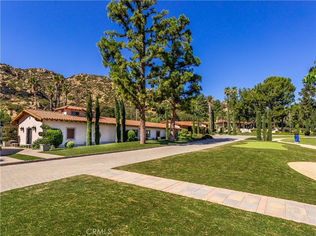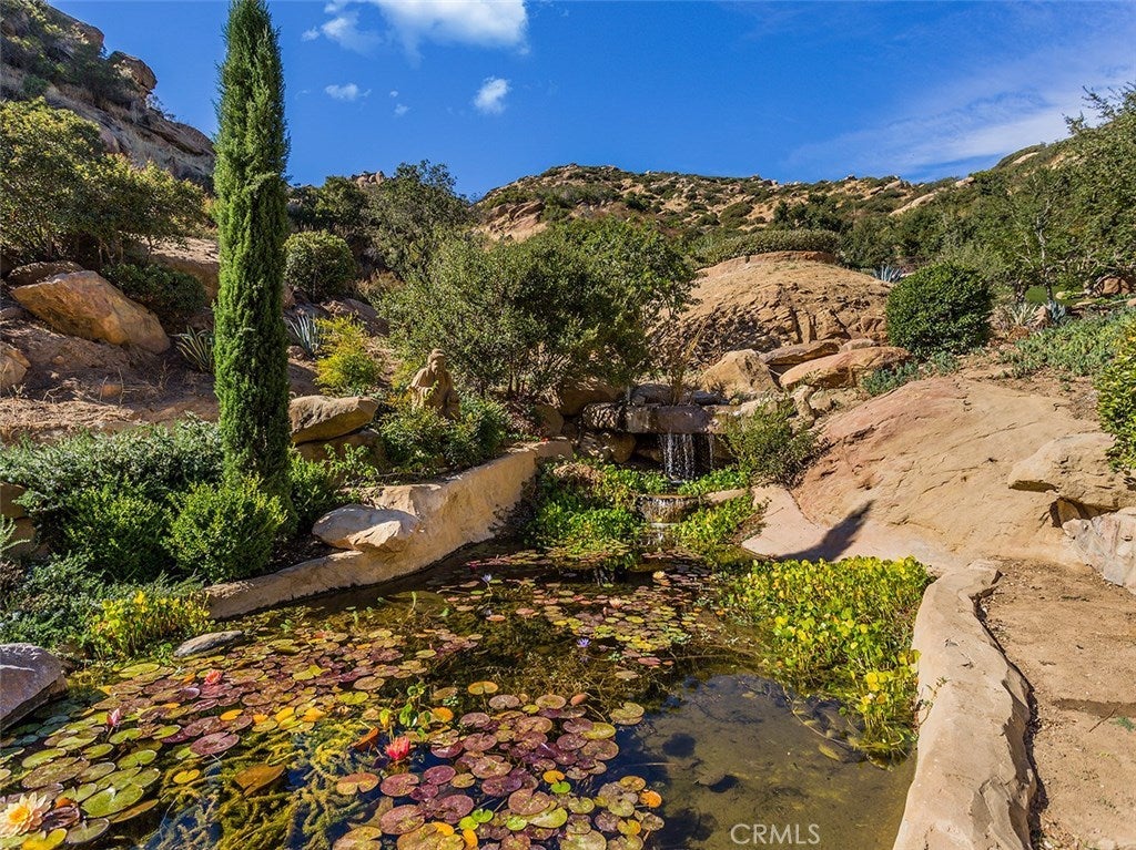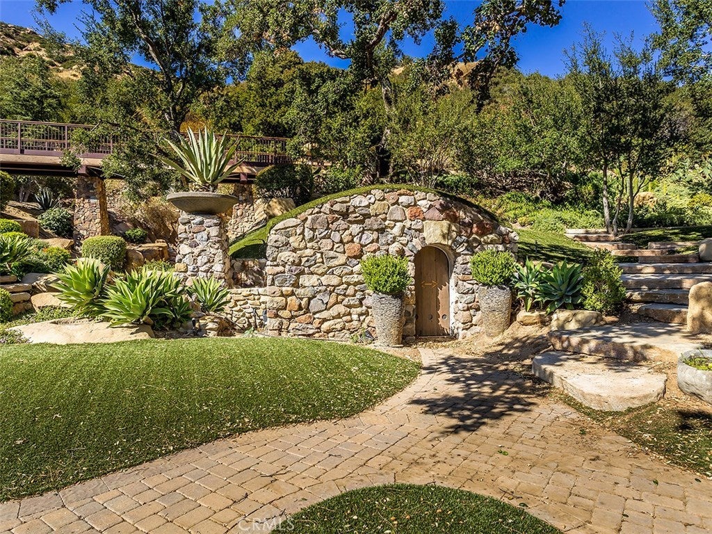 Nestled in the foothills of the Santa Susana Mountains, "The Ranch" is a historically significant estate, originally homesteaded in 1874. Spanning nearly 16 acres, the property is adorned with picturesque hills, striking boulders, and majestic Heritage Oak trees. Such unique properties are truly rare, appearing once in a generation. This extraordinary compound offers over 12,298 square feet of living space, including a main residence with a spacious basement that holds endless possibilities, three guest bungalows, art galleries, and a grand ballroom. The meticulously maintained landscape seamlessly blends the home with entertainment spaces, creating a serene oasis. The estate features garage parking for up to 10 cars, a pool, spa, waterfalls, and tranquil koi ponds. A Japanese Garden meanders through the property, enhancing its peaceful ambiance. A historic wine cave, crafted in the 1800s from local stone, combines the past with the present, featuring an artisan-built, illuminated onyx bar. Nearby, a tranquil entertainment area allows you to enjoy the soothing sounds of a waterfall cascading into lotus and water lily-filled ponds. With potential for a helipad and three separate gated driveways, the property is designed for ultimate privacy and convenience. A lighted tennis court, complete with a stage, viewing pavilion, and guest amenities, adds to its allure. Located within the 24-hour guard-gated community of Indian Springs Estates, known for its exclusivity and rustic landscape, the estate is conveniently close to the 118 freeway, shopping, dining, and entertainment options. Just a half-hour from Los Angeles and near the renowned Sierra Canyon School, this property offers an unparalleled opportunity for multi-generational living, a private Zen retreat, or potential subdivision. This unique site is truly irreplaceable, becoming more special with every moment spent there.