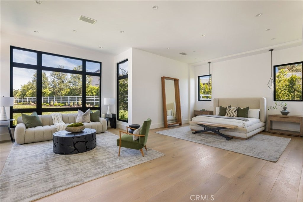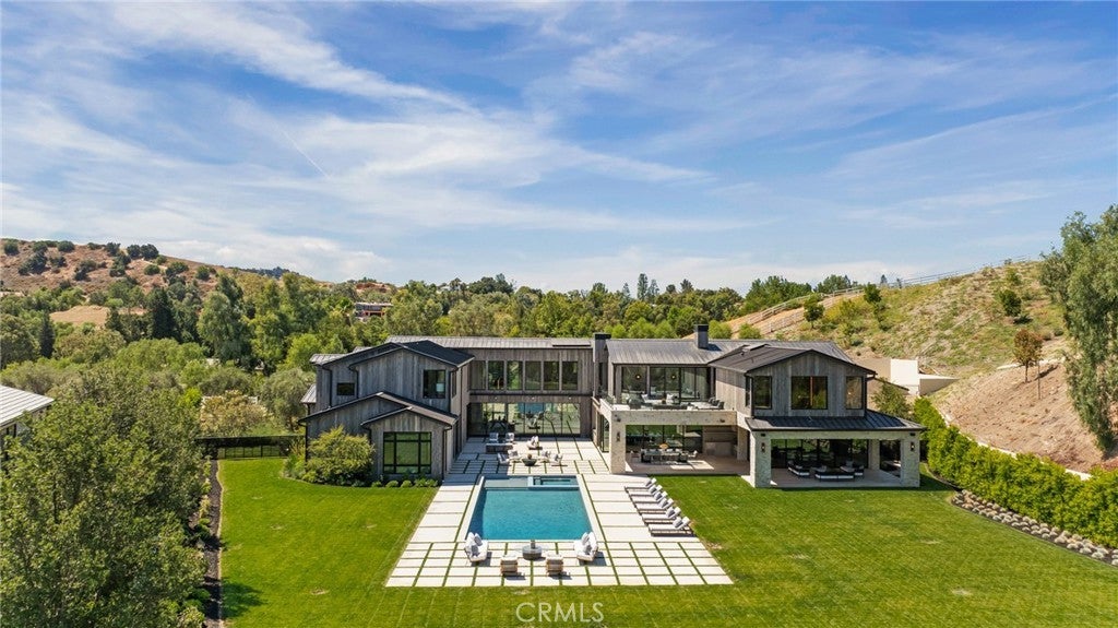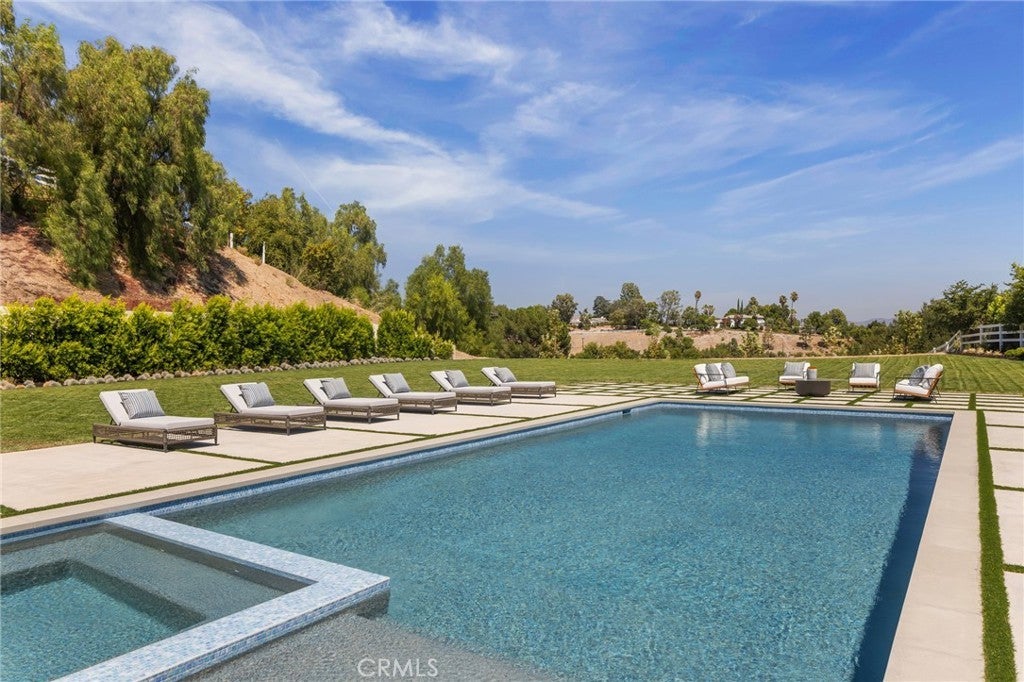 This spectacular, brand new, one-of-a-kind estate offers sweeping views, is nestled at the very end of a quiet private drive, and is sited on a private and beautiful 2.78 acre lot. Bathed in natural light, and featuring over 20,000 square feet of quality, elegance, & sophistication, highlights of the sunny open floor plan include volume ceilings & huge picture windows, sliding walls of glass that open to the spacious grounds, a gorgeous chef's kitchen with two center islands, counter seating, & full catering kitchen, a large adjoining family room, open living & dining rooms that are perfect for casual entertaining, plus a lounge with glass encased, refrigerated wine room, an expansive and stunning home theater with upholstered walls, a custom office with it's own bath, a gym with steam, sauna, and massage room, plus a bonus room, a second (upstairs) den, and a game room with a two lane bowling alley! There are seven large bedroom suites including the magnificent primary suite with sitting room, two sided fireplace, luxurious stone bath, two huge, room sized closets, and a superb lounging balcony overlooking the lush grounds. The enormous backyard offers a sparkling pool & spa, a full barbecue center, two covered patios, and expansive grass lawns with lots of room to roam. Additional amenities include an elevator, two staircases and garages for seven cars, plus loads of off street parking. This home exemplifies the essence of the relaxed, indoor/outdoor California lifestyle. (See property video linked below).