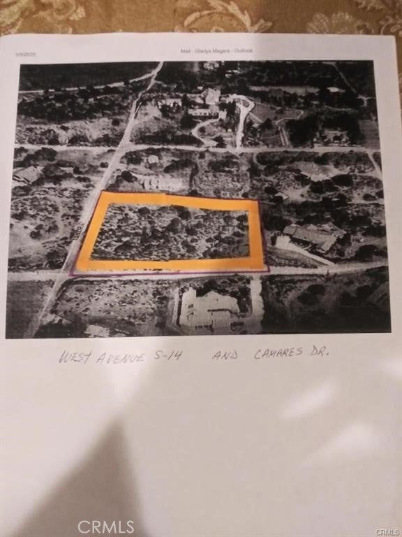 Location! Location! West Palmdale with amazing view to Palmdale Lake! Build your dream custom home Lot size 2.50 acres for Sale!. The lot is rectangular shape 2.5061 acres approx. over 40,000 Sq Ft. Surrounded by many beautiful custom built homes in the area. The land has access to water & power in the area no sewer connection. Nice hiking & rural mountains, close to Ana Verde Hills with convenience access to the 14 freeway.. Buyers need to install a septic tank or gas on their own. (LAND SOLD AS IS) it is important for buyers to perform their own due diligence/Inspection before making a purchase. En Espanol: Linda Propiedad en la area de Oeste de Palmdale, un lote en venta 2.50 ectarias para construir tu casa de tu suenos. El lote es rectangular con una vista al Lago de Palmdale. Muchas casas lindas alrededor y caras en la area de Camares Drive. Las propiedades alrededor se estan vendiendo rapido. La area tiene para caminar, montanas, cerca a la comunidad de Ana verde Hills con accesso al freeway 14. El terreno tiene acceso publico de agua y luz en la area pero no hay conneccion de desague,ni gas el comprador tiene que instalarlo por su cuenta aparte. Compradores hacer sus propias investigaciones. LLamar a Gladys la agente en lista para mas detalles.