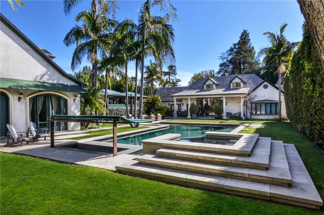 The Ultimate Luxury Retreat in the Heart of Sherman Oaks. Welcome to a Beverly Hills-inspired sanctuary, where privacy, prestige, and unparalleled craftsmanship converge. Nestled behind gates on an expansive two-thirds-acre lot, this custom-built masterpiece is making its debut on the market. Spanning over 5,500 square feet, every inch of this home has been meticulously designed with no expense spared—a true statement of sophistication. Grand Living, Elevated Elegance. This 4-bedroom, 4-bathroom on the estate is predominantly single-story, offering an effortless flow of light-filled, grand-scale living spaces. The exceptions? A sprawling bonus room/gym/office perched above the attached 3-car oversized garage with plenty of built in storage, adding an extra dimension of luxury and functionality. Every detail has been curated for style and comfort—from the hidden home theater, designed for the ultimate cinematic experience, to the James Bond-inspired private office, where sophistication meets intrigue. Each room is perfectly proportioned, exuding warmth, elegance, and timeless charm. Endless Possibilities & Extraordinary Amenities in this Detached 2,100+ Structure. ~ Massive 6-car garage featuring 20+-foot ceilings, ideal open space for training, rehearsals, or studio office space, with parking. ~ Attached 1-bedroom, 1-bath guest suite with private entrance—perfect for visitors or extended stays, including an upstairs loft area 640sf ~ Separate rear-street walk-in access, offering potential for an ADU conversion, business space, or private retreat Outdoor Paradise – A Dream for Entertainers This resort-style estate is designed for seamless indoor-outdoor living, with expansive grounds that set the stage for unforgettable gatherings: ~ Parking accommodates up to 18-20 vehicles - a rare find in Los Angeles ~ Spectacular swimmer’s pool with a swim-up bar and spa, evoking a five-star resort experience ~Lush, oversized grassy yard, perfect for hosting lavish parties, family celebrations, or serene evenings under the stars A residence of this caliber and distinction rarely graces the market. This is your once-in-a-lifetime opportunity to own a true custom estate in one of Los Angeles’ most coveted neighborhoods. This masterpiece won’t last!