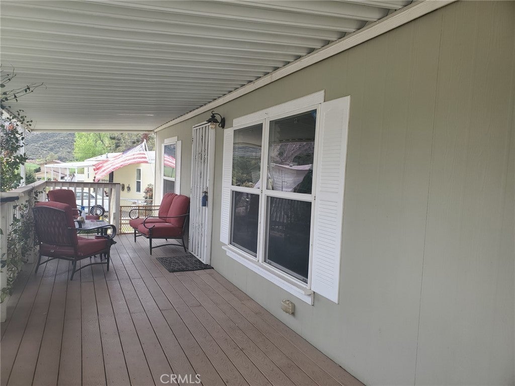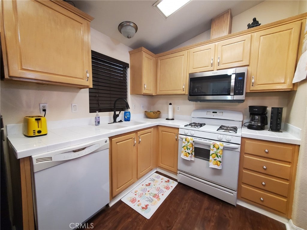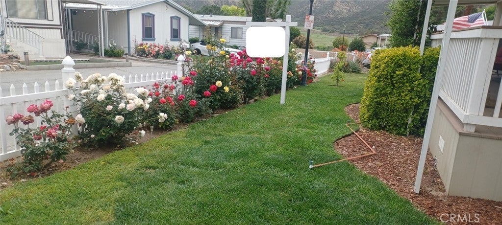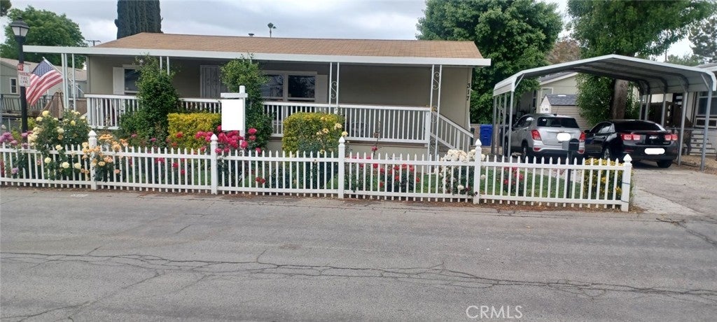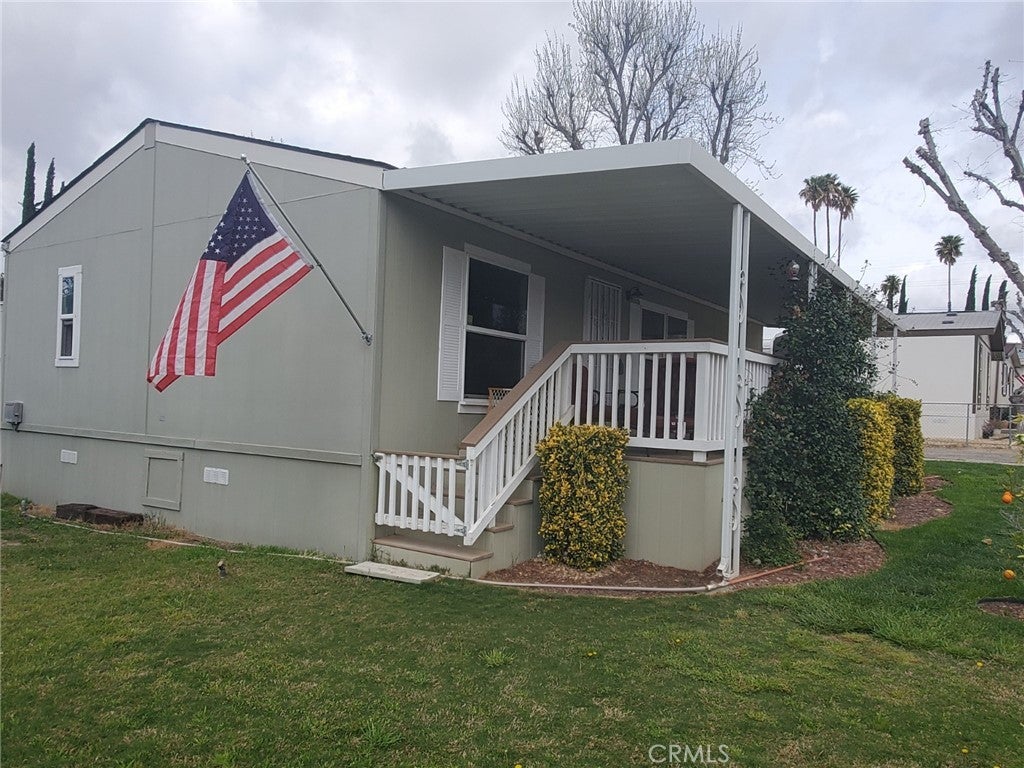 Welcome to a charming 4 bedroom 3 bath home, which sits on a double lot in a quiet family park with a beautiful front yard that is fenced. This property features a large front porch with trex decking. The living room features a beaded crystal ceiling fan/light with laminate flooring which continues into the kitchen. The kitchen is open to the living room, has an eat in breakfast area with a crystal beaded chandelier, a brand new white tile counter top, dishwasher, stainless steel microwave above the stove, vaulted ceiling and opens to the laundry room. The laundry room has a side by side washer and dryer with shelving for storage. The mother in law suite in the back of the home has a large bedroom with tiled flooring, a private 3 piece bathroom and a private entrance. The main bedroom has a vaulted ceiling, ceiling fan with a crystal beaded light fixture, carpeting, a large walk in closet and a private ensuite. The ensuite has a large garden tub, a separate stall shower and laminate flooring. The other 2 bedrooms are on the opposite side of the house and have large closets, ceiling fans and carpeting. The main bathroom has a shower tub combo, laminate flooring and updated faucets. This home is on a lot is a little over 2 1/3 times the average lot size with the same space rent as a regular lot. This home features a large carport with room for up to 5 cars, a concrete slab on the side of the house with a cover for outdoor living and shed along with a fenced yard. This home is a rare find, schedule your showing today!