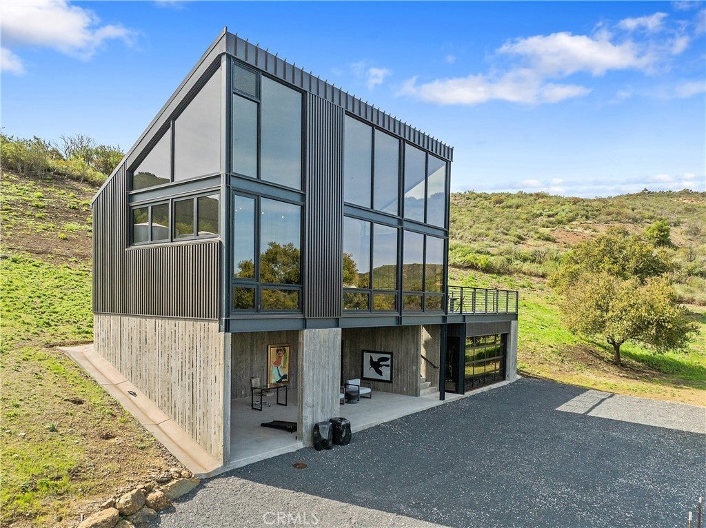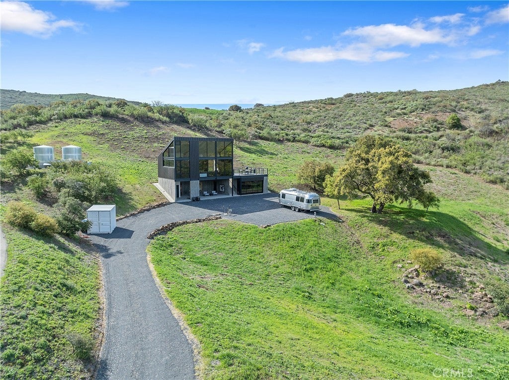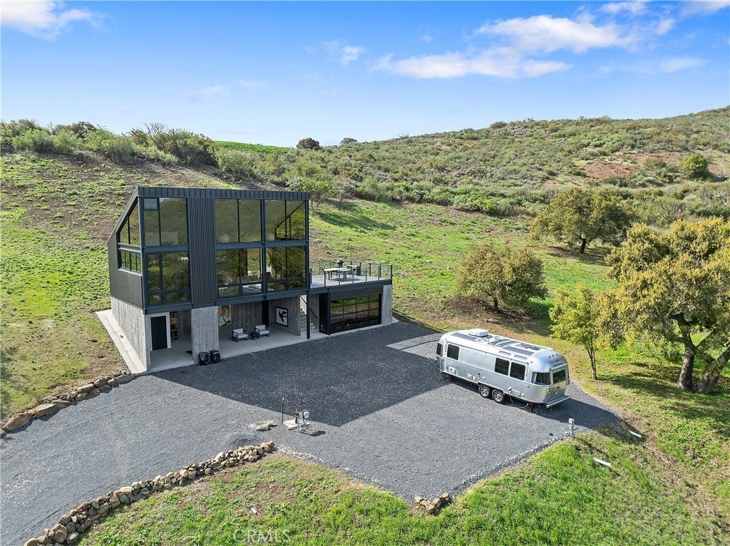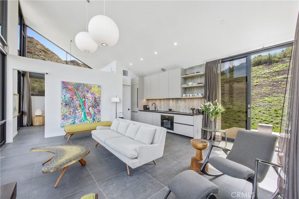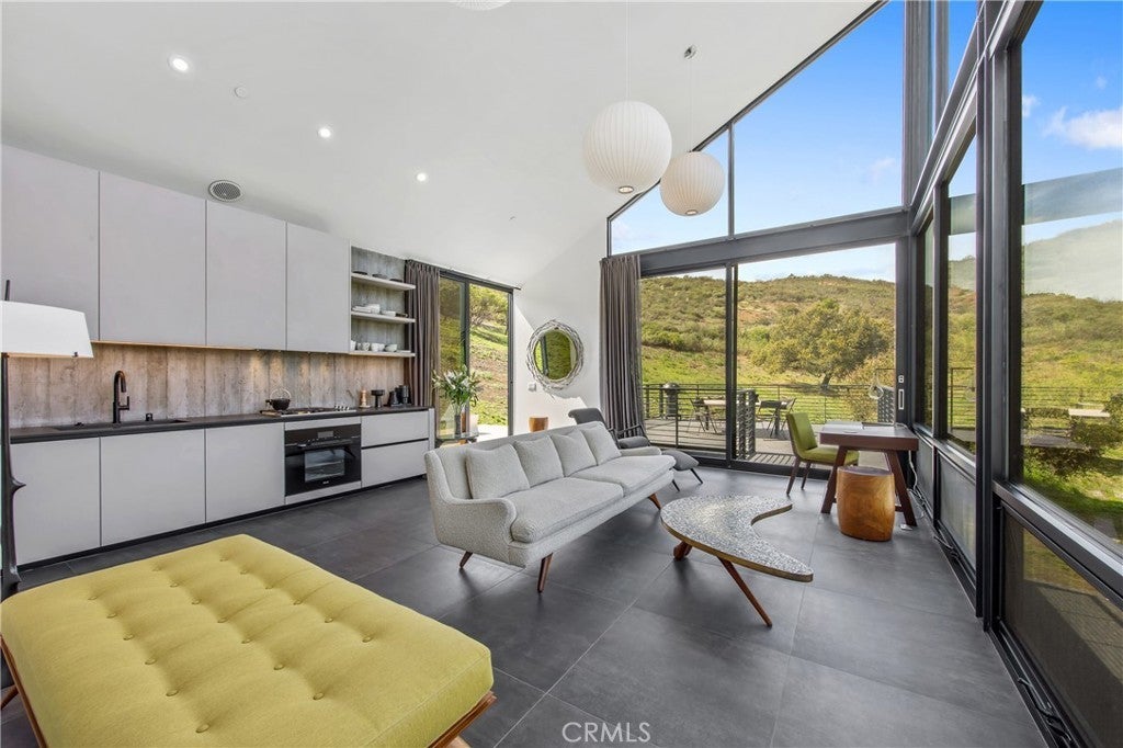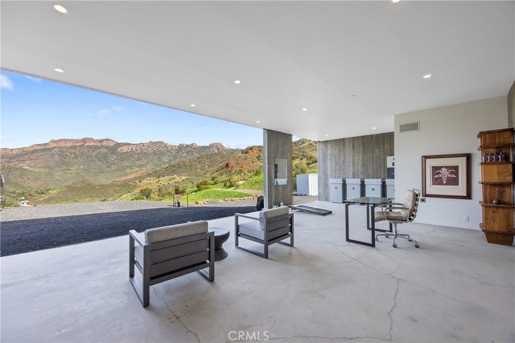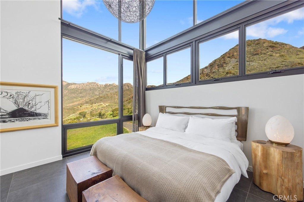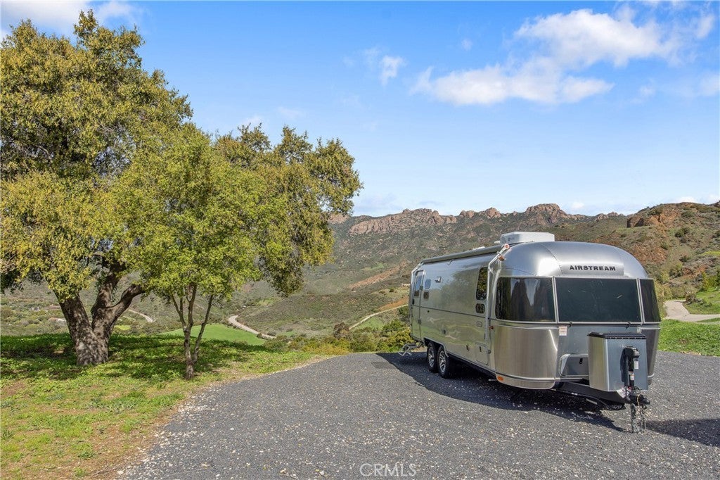 Somewhere over the rainbow is this very rare one of a kind Malibu off-the-grid retreat. Situated on 30 acres of beautiful land, this modern home designed by Architect Bruce Bolander, is made of 20 Foot Glass, board form concrete, and steel, with stunning views of the rolling hillsides and mountain tops that change like a picture hourly. Never offering the same view twice. Ocean views from the top of the property and hiking paths all over to enjoy mother nature and the wildlife. The home has loads of possibly to expand should one choose to. This home is perfect for someone looking for privacy and who enjoys the outdoors. You can create a ranch, a meditation retreat, vineyard, or your own homestead in the hills of Malibu located on the Ventura County side. This property is fully self-contained, with your own solar generating power and backup generator, two water wells, and propane gas. Beautiful rolling hills offer a great space for a greenhouse, barn, horses or a solarium. Expired plans for another home on the property are available. Enjoy amazing nights gazing at the stars and the galaxy! A bonus to this property is a 2024 Airstream Trade Wind that is ideal as guest quarters for your friends and family. Looking to stay connected to the outside world…no problem the property has satellite WIFI. The kitchen and bath have been recently redone with Boffi Case 2.0 cabinetry, Micro Mosaic Sicilian Tile/Shower, brand new Meile appliances, Newport Brass matt black kitchen and bath faucets, Dedar custom draperies from Italy, and top of the Line finishes. Loads of upgrades and amenities all over this property.