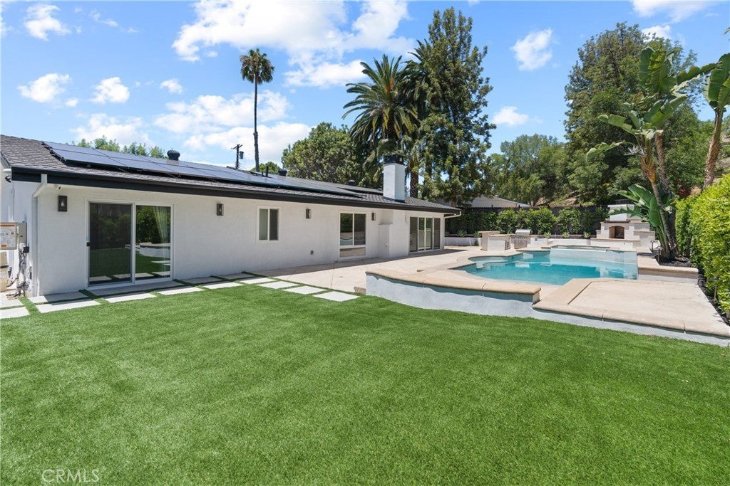 Welcome to 5540 Franrivers Ave — a beautifully remodeled modern home nestled in the heart of Woodland Hills. This stylish 4-bedroom, 3-bathroom property spans 2,016 square feet and includes a fully permitted 530-square-foot ADU (1 bed/1 bath), ideal for guests, rental income, or a private home office. Remodeled in 2021, both the main home and the ADU showcase sleek, contemporary finishes, open-concept living spaces, and thoughtful upgrades throughout. The main residence features a bright and airy floor plan, designer kitchen, updated bathrooms, and spacious bedrooms designed for comfort and style. The converted garage ADU offers its own separate entrance, modern kitchen, and full bathroom—perfect for multi-generational living or added investment value. Located in a desirable neighborhood near top-rated schools, shopping, and dining, this move-in-ready home offers the best of Southern California living. Whether you're looking for a stylish family home or a smart investment opportunity, 5540 Franrivers Ave delivers it all.