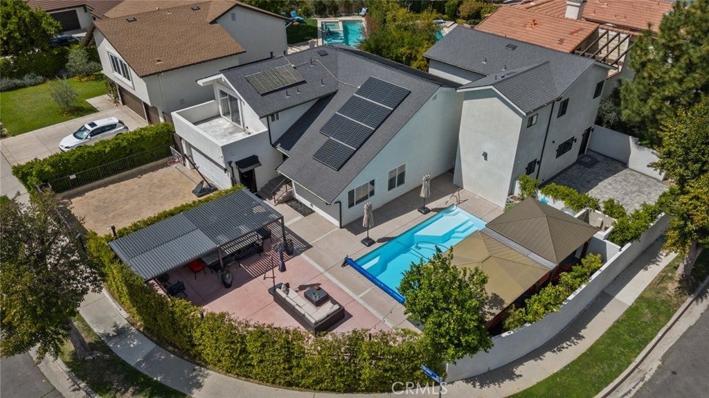 Located in Woodland Hills, this updated property that combines 3,165 square feet of living space, featuring a total of 6 bedrooms, 4 full bathrooms, and 2 half bathrooms, presents a rare dual-living opportunity through a beautifully renovated main house and a newly constructed detached ADU. Together, these two residences delivers a perfect blend of luxury, flexibility, and long-term value on a well-appointed lot. Main House – 22835 Styles St, Woodland Hills CA 91367 This 4-bedroom, 3-bathroom residence spans approximately 1,965 sq ft of bright, open living space. Many upgrades have been completed in the last two years, including a new roof, new stucco, gutters, and a newer A/C. The pool features a new pump, a saltwater system, and is powered by a paid-off solar panels system. Brand New Meters on both main house and ADU Additional enhancements include a new motorized entry gate, Mercedes-Benz EV charger, upgraded electrical panel, and an 8-camera wired security system. The modern, European-style kitchen is equipped with ample cabinetry, premium stainless steel appliances, and a large center island that flows into open living and dining areas. Vaulted ceilings and expansive windows bring in abundant natural light. The primary suite offers private terrace access, and all bedrooms are generously sized. The backyard is designed for entertaining, featuring a sparkling pool, two gazebos, a pergola, multiple lounge areas, and privacy hedging for year-round enjoyment. ADU – 6245 N McLaren Ave, Woodland Hills CA 91367 This brand-new, detached 1,200 sq ft ADU features 2 bedrooms and 2.5 bathrooms with its own private entrance on a quiet dead-end street. The unit includes new appliances, two wired security cameras, separate gas and solar panels, and modern finishes throughout. Ideal for multi-generational living or rental income, this property combines modern upgrades, energy-efficient systems, and smart home features in one of Woodland Hills most desirable neighborhoods.
