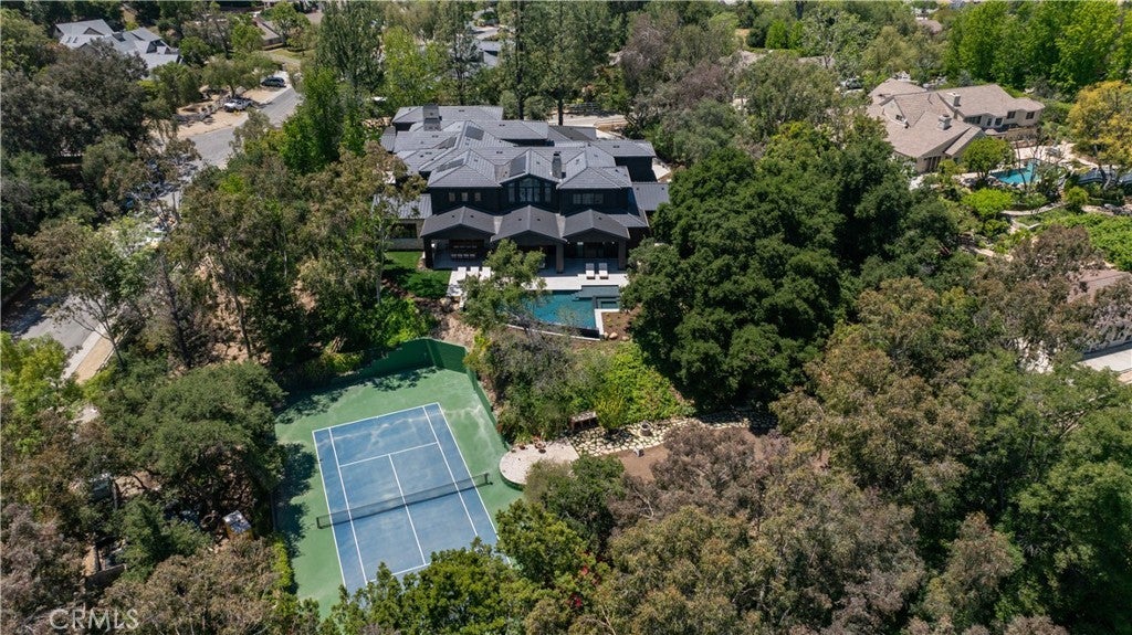 Gorgeous new estate sited on nearly 2.5 acres of mature trees and superbly private grounds. Nestled on a quiet cul de sac, highlights of this beautifully built residence include an open floor plan that's perfect for relaxed family living and gracious entertaining. Features include a superb chef's kitchen with two islands & sunny breakfast room, opening to the spacious family room with stone fireplace and huge picture windows overlooking the lush grounds. Additional amenities include both formal living & dining rooms, a lounge with wet bar, a glass encased, refrigerated wine room, a beautiful custom office, a deluxe home theater, a gym/wellness center with both steam shower & sauna, and a second, upstairs den. All six bedrooms in the main house are en suite, and the primary suite is a true statement of luxury with dual all stone baths, two generous, room-sized custom closets, a two-sided, floor to ceiling fireplace, and an expansive walk-out balcony, all nestled amongst mature oak & pine trees. The amazing grounds also include your own private tennis court, a sparkling infinity edged pool and spa, covered patio with barbecue center, and a one bedroom guest house set on it's own pad with a large grassy lawn area, plus a 4-car garage with loads of off additional off street parking. With a wonderful, center of Hidden Hills location, close to highly regarded public and private schools, and just minutes from The Common's Shopping Center, this home has much to offer. *** Please see property video in the link below.