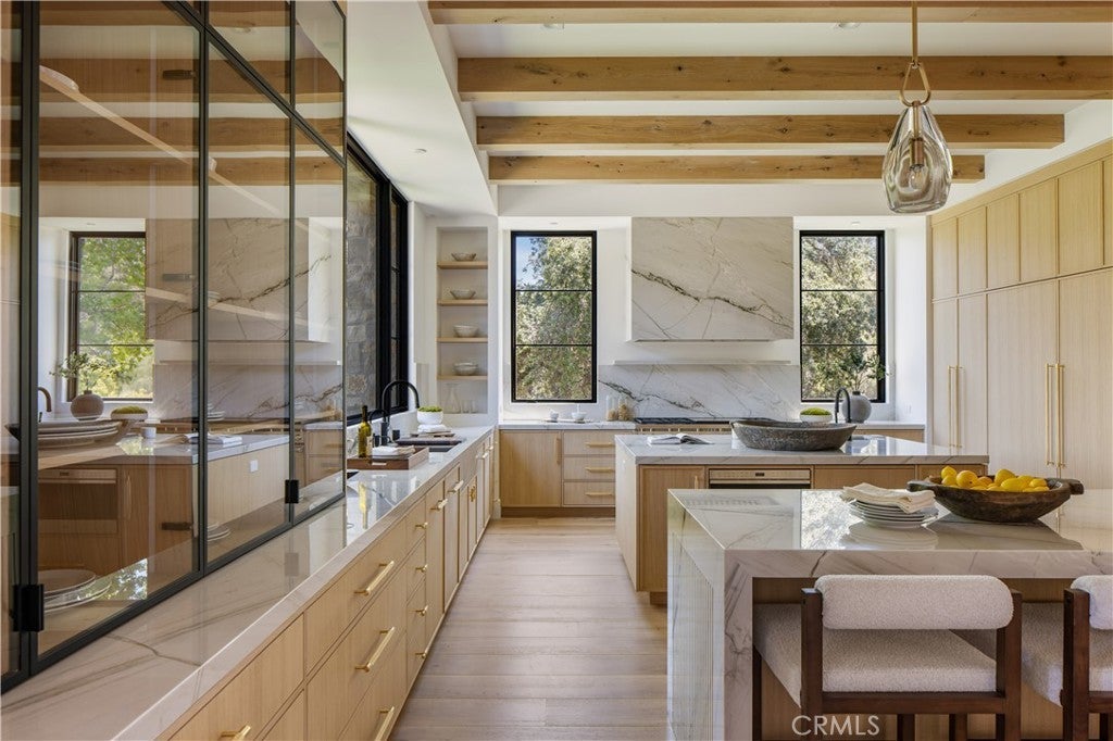 Beamed Ceilings, Ceiling Fan(s), Separate/Formal Dining Room, Eat-in Kitchen, Bedroom on Main Level, Primary Suite, Balcony, Breakfast Area, Breakfast Bar, Built-in Features, Dressing Area, Entrance Foyer, High Ceilings, Multiple Staircases, Open Floorplan, Pantry, Recessed Lighting, Stone Counters, Storage, Walk-In Pantry, Wet Bar