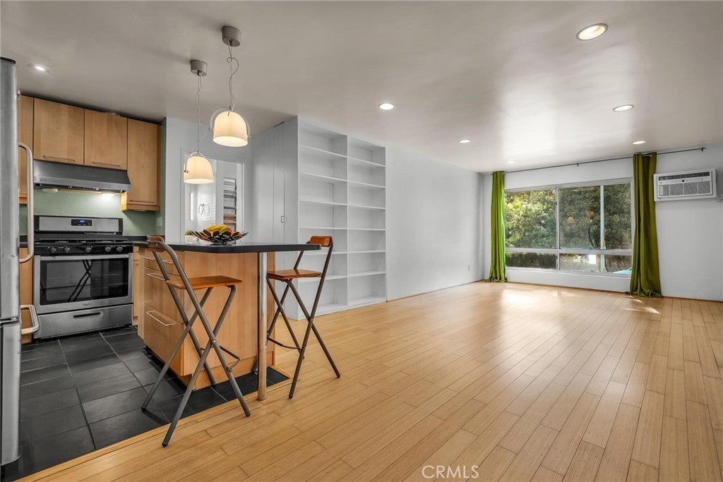 Welcome to 1222 N Olive Dr #213, a beautifully updated 1-bedroom, 1-bathroom condo that blends modern comfort with an unbeatable West Hollywood location. Nestled between the iconic Sunset Blvd and Santa Monica Blvd, this stylish home places you in the heart of the vibrant Sunset Strip. Step inside to discover a thoughtfully designed open floor plan, featuring a sleek kitchen with a functional island that seamlessly connects to the living area. The condo boasts elegant bamboo flooring throughout, enhanced by recessed lighting that brightens the airy space. The kitchen is outfitted with stainless steel appliances, perfect for cooking and entertaining. This secure building offers a host of desirable amenities, including a community room, a refreshing pool, a well-equipped gym, and a relaxing sauna. The MONTHLY RENT INCLUDES WATER, GAS, and ELECTRICITY!!! Additional features include camera surveillance for added security and a gated, covered carport space for parking. Located in one of West Hollywood's most sought-after neighborhoods, you'll be just steps away from world-class dining, shopping, and nightlife. Whether you're lounging by the pool, hitting the gym, or exploring the bustling local scene, this condo offers the ultimate in stylish and convenient living. Don’t miss your chance to call this chic and amenity-rich condo your new home—experience the best of West Hollywood!