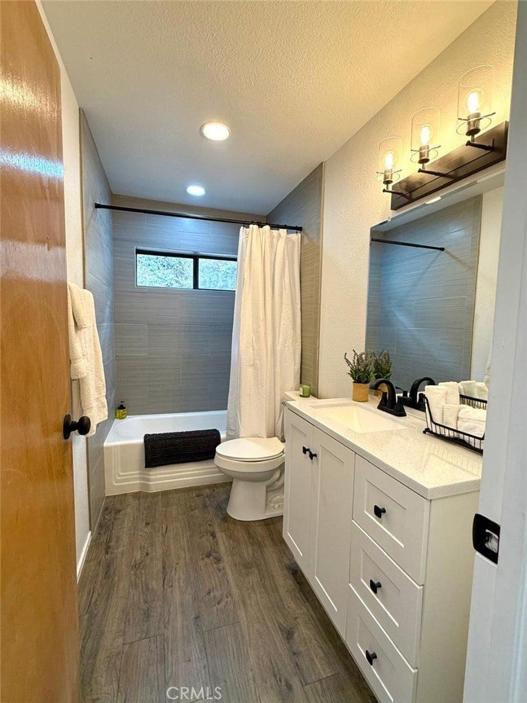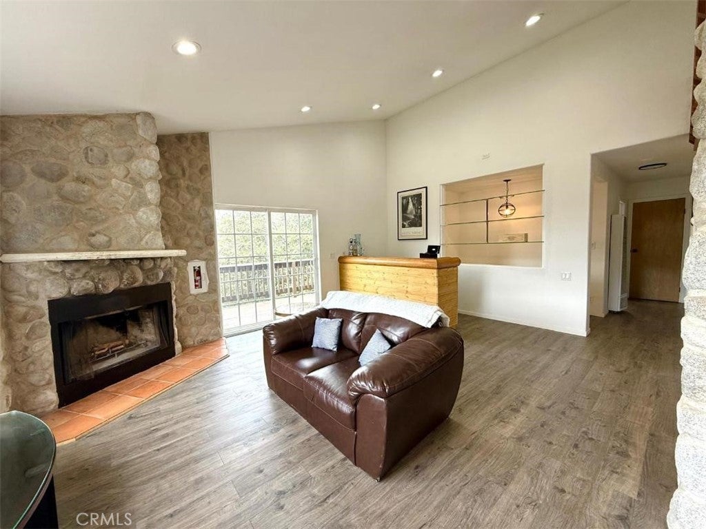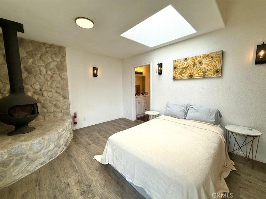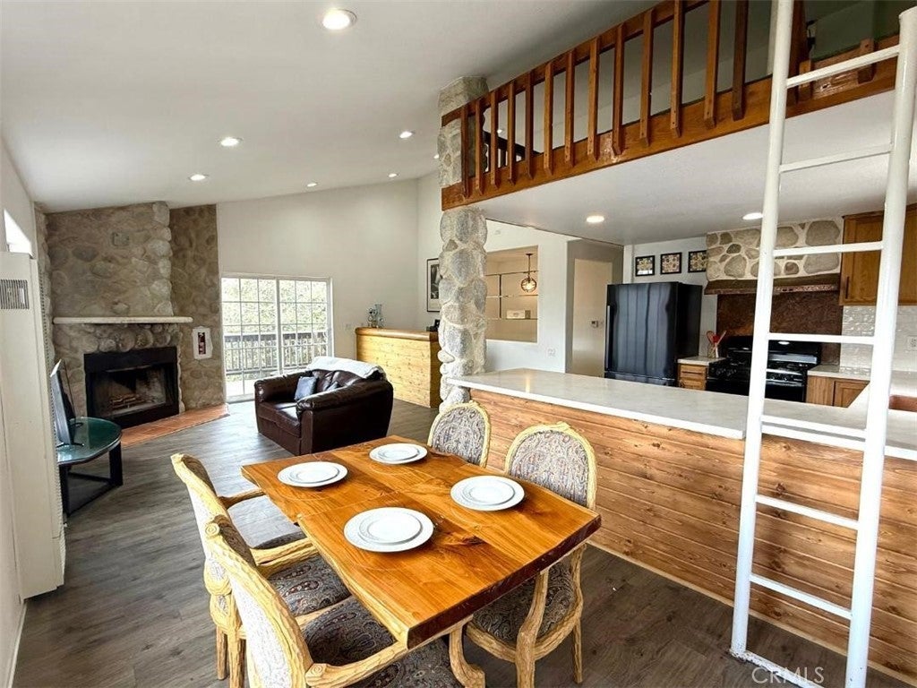 Private Mountain Retreat with Greenbelt Views Located in the scenic community of Pine Mountain Club, this updated 2-bedroom, 2-bath home blends modern design with classic mountain style. Backing to protected greenbelt land, it offers privacy and uninterrupted views of the forest and surrounding peaks. The upper level features an open-concept living area with vaulted ceilings, large windows, and a wood-burning fireplace. A fixed metal ladder leads to a versatile loft space, suitable for reading, hobbies, or occasional guests. A built-in wet bar makes entertaining easy, and the full-length deck provides a quiet place to enjoy the views with no nearby homes. The kitchen includes quartz countertops, custom natural-wood cabinetry, a copper farmhouse sink, and hand-hammered copper details on the range hood and backsplash. Both bathrooms have been updated with modern fixtures, streamlined vanities, and contemporary gray tile. The primary suite features its own wood-burning fireplace. The lower level offers a welcoming entry area, laundry space, and additional storage. A concrete driveway provides convenient parking. Residents of Pine Mountain Club have access to a 9-hole golf course, tennis courts, swimming pool, clubhouse, equestrian center, and miles of hiking and biking trails in the Los Padres National Forest. Whether for full-time living or a weekend escape, this home offers comfort, style, and a peaceful mountain setting.