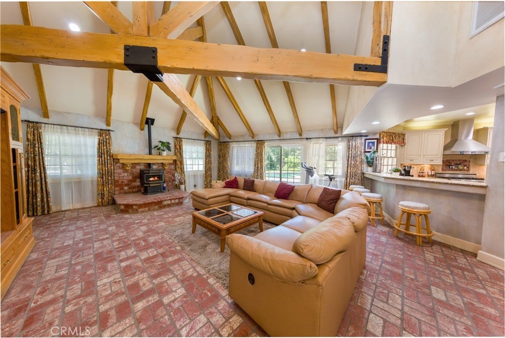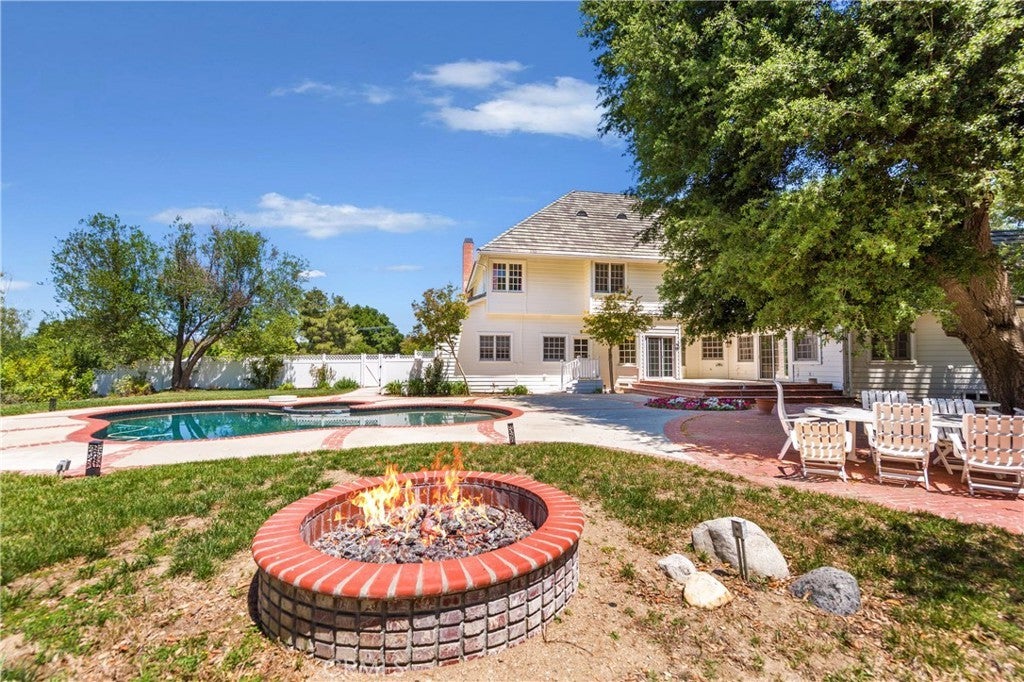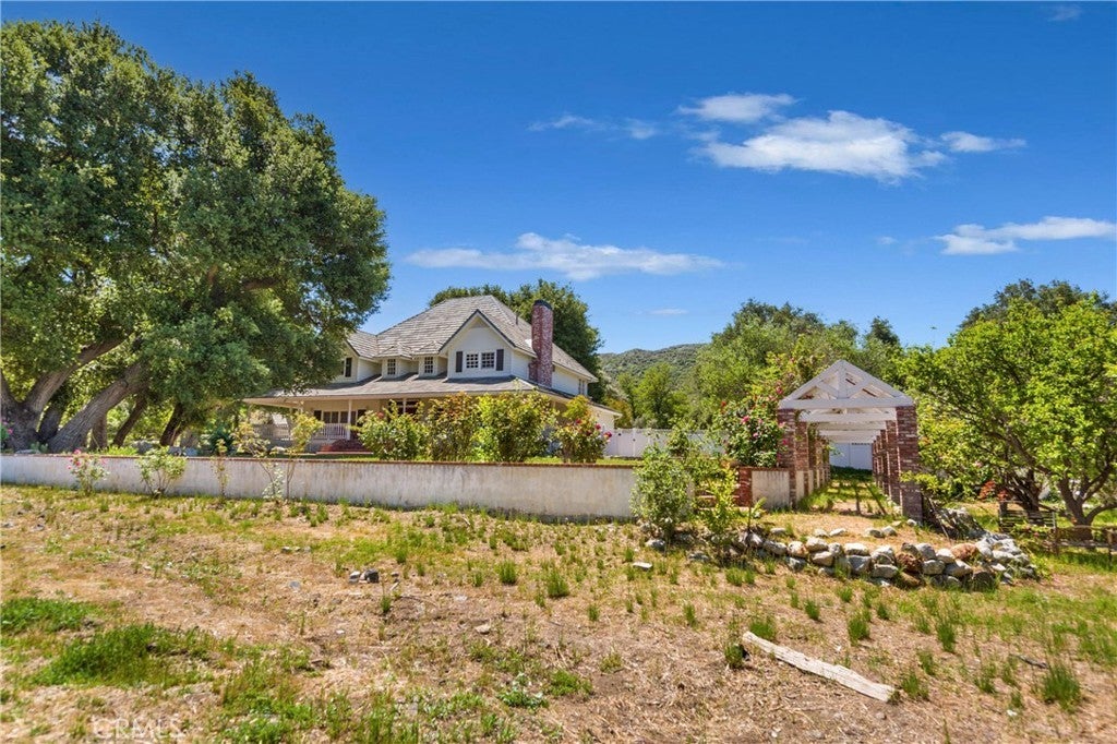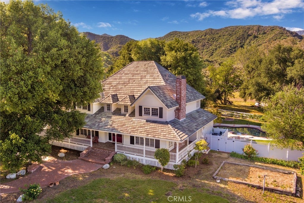Beautiful Sand Canyon Custom gated estate home with guest house. Incredible flat land with over two acres of yard area and gorgeous Oak trees on the property. The amenities include gated main home with 5534 sq. ft. and 1299 sq. ft. guest home, a turnaround driveway, swimming pool and spa, private back patio & grass area, BBQ area, wine cellar, three car attached garage at the rear of the main house and two car garage at guest house. Peaceful front yard area with sensational pergola area spanning over 60 ft. The home has a classic wrap around front porch and a great floor plan that includes five spacious bedrooms and five bathrooms in the main house, two family rooms, hardwood floors, bar/library- game room, separate guest house with kitchen, two rooms-upstairs/office, bathrooms and a large entertainment or work out fitness room area below with a two car garage. The main kitchen is equipped with a Viking range, storage/cabinet space, breakfast bar area, stone counters and opens to family room with ample windows making it light and bright. Huge primary bedroom with bathroom large vanity area, soaking spa tub and sitting area. Spectacular private estate home in Sand Canyon with room to entertain and enjoy!