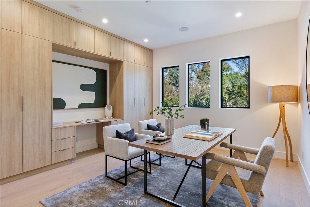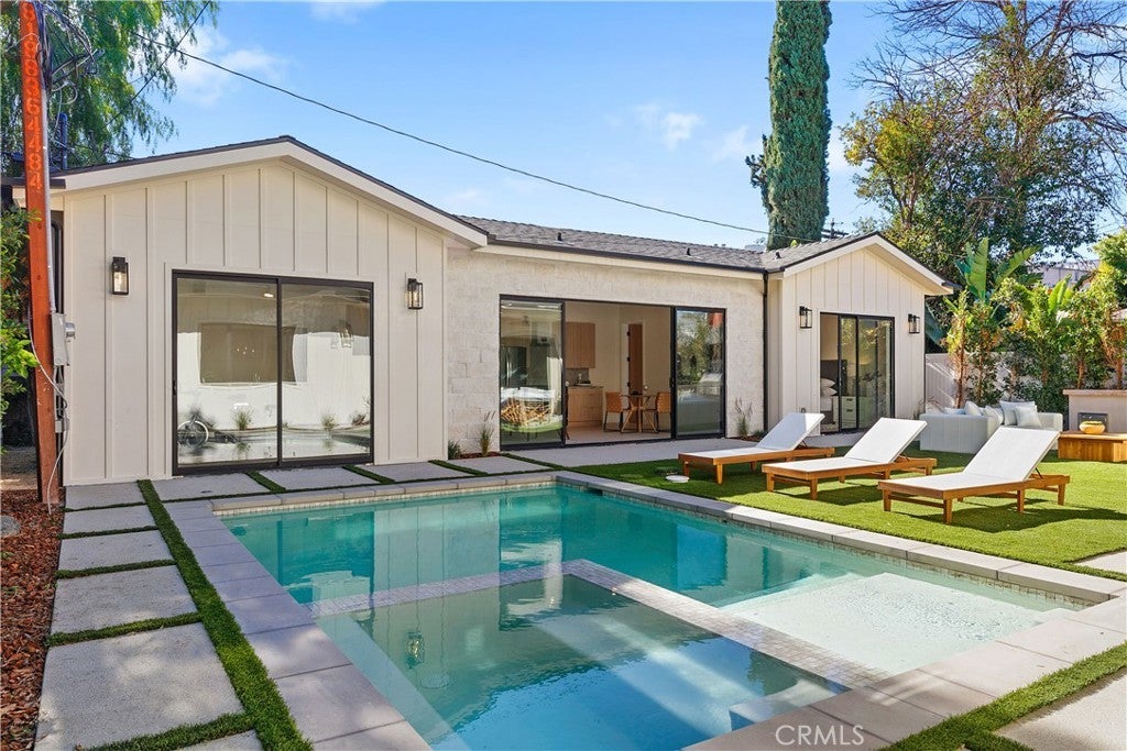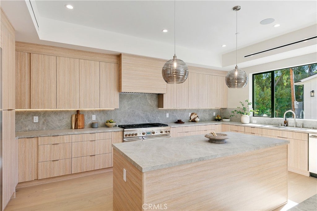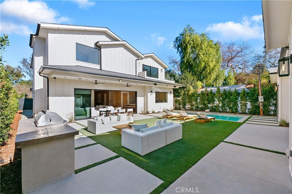 Experience refined living in this stunning new construction nestled in the heart of Sherman Oaks, offered fully furnished! Thoughtfully crafted with elegance and sophistication, this approximately 4,600-square-foot residence offers 5 spacious bedrooms and 5.5 luxurious bathrooms on a generous 8,000+ square foot lot. Step inside to a sun-drenched open floor plan adorned with designer finishes and exquisite attention to detail. The gourmet kitchen is a culinary masterpiece, outfitted with professional-grade appliances, dual oversized islands, imported stone countertops, and custom cabinetry, perfectly tailored for both grand entertaining and everyday living. Each bedroom is a private sanctuary, complete with en-suite baths that provide comfort and tranquility. A detached guest house enhances the property’s versatility, offering a full kitchen and two flexible rooms ideal for guests, a home office, gym, yoga studio, or cabana. Perfectly situated in prime Sherman Oaks, this home offers unrivaled access to acclaimed dining, upscale shopping, scenic parks, and so much more.
