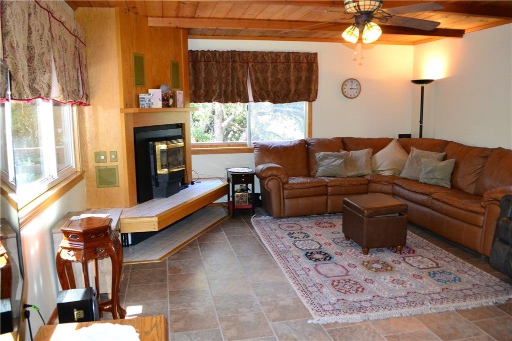 Easy mountain living at it's finest. Easy to maintain home, easy to maintain yard. Home has been meticulously cared for by the current owners. Home has vinyl siding and lots (884 sq ft) of front and back Trex decking. Home could easily be wheelchair accessible. Enter at the front door into the living room, dining room and kitchen. Home has a nice open floor plan for easy entertaining. Ceilings are knotty pine and the floors are tile looking vinyl. The living room boasts lots of windows, pellet insert, surround sound and a stained glass ceiling fan. The kitchen has oversized granite counter tops, breakfast bar with pop up outlets, tons of storage, kitchen window over the sink and attached laundry area with back door. The primary bedroom and ensuite bath are also on this level. The ensuite bath has a dressing/ make up area and again, lots of built in storage. Upstairs you will find a loft bedroom/ office/ playroom. Higher ceilings and windows finish off this space. This level also has a guest bedroom, with unfinished closet/ attic space and a full bath. Bedrooms are carpeted for a warm cozy feel. Other ammenities include a 2 car garage, lots of off street parking, forced heat, water softner and under house storage/ workshop. This is a must see mountain home.