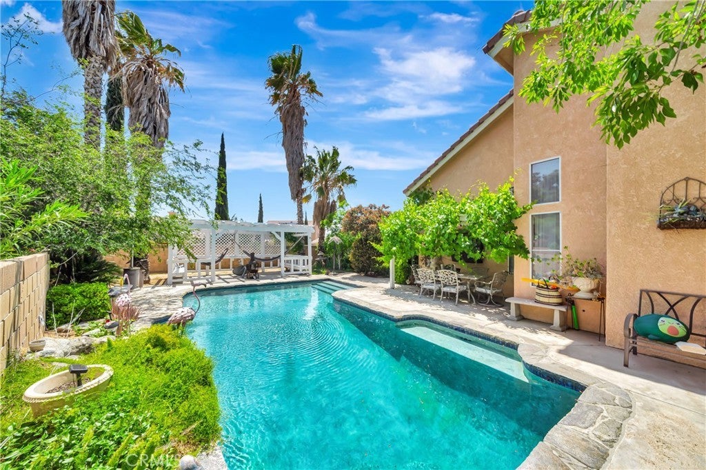 Fantastic West Palmdale Two Story Pool Home in Prestigious Country Club Estates! This Spacious 4 Bedroom, 3 Bathroom Home Sits on a Large Corner Lot & Boasts Custom Flooring & Custom Interior Paint Throughout. Step Into a Grand Living Room with Fireplace & a Formal Dining Room Overlooking the Sparkling Custom Built-In Pool. The Updated Kitchen Features White Quartz Countertops, Stainless Steel Appliances, & a Double Oven Perfect for Entertaining. The Cozy Family Room Includes a Second Fireplace & Wet Bar. Upstairs, the Expansive Primary Suite Offers Built-In Shelving, a Large Walk-In Closet, Spa Tub, Newly Tiled Shower, & Dual Sinks. Bedroom 3 also Features a Walk-In Closet. Outside, Enjoy the Beautifully Landscaped Backyard with 3 Covered Patios, a Separate Fenced Pool area, & a Dog Run. Additional Highlights Include a Downstairs Bedroom & Bath, Indoor Laundry Room. The Front Yard Includes a Beautiful Private Courtyard that Offers Extra Privacy & Curb Appeal. The Property is Surrounded by Luscious Green Landscaping, Mature Trees, & Flourishing Grapevines Creating a Peaceful & Inviting Outdoor Oasis. Attached 3-Car Garage. No HOA & Walking Distance to the Country Club & Golf Course!