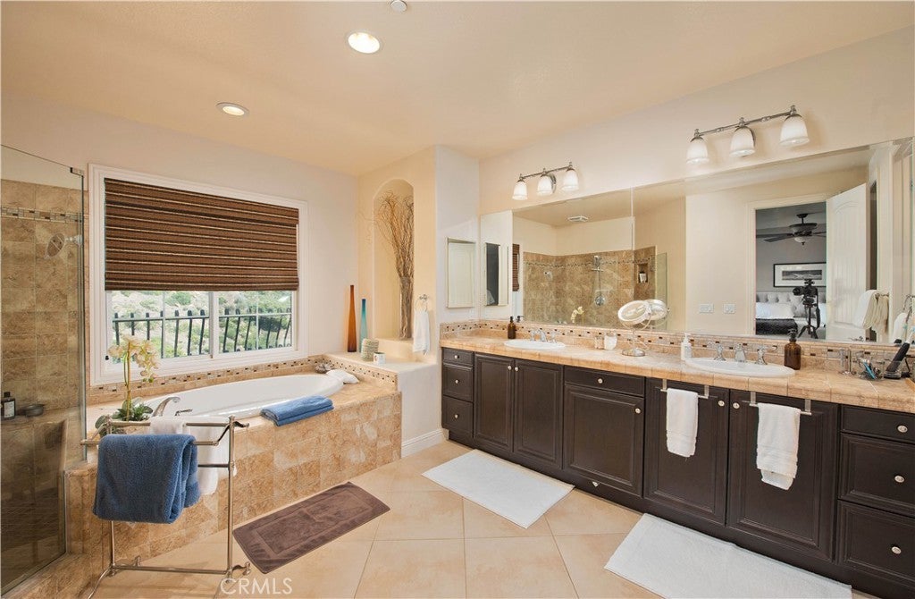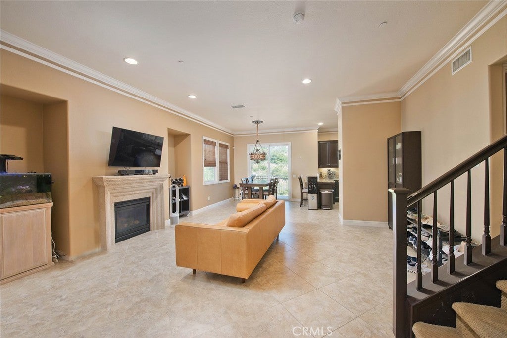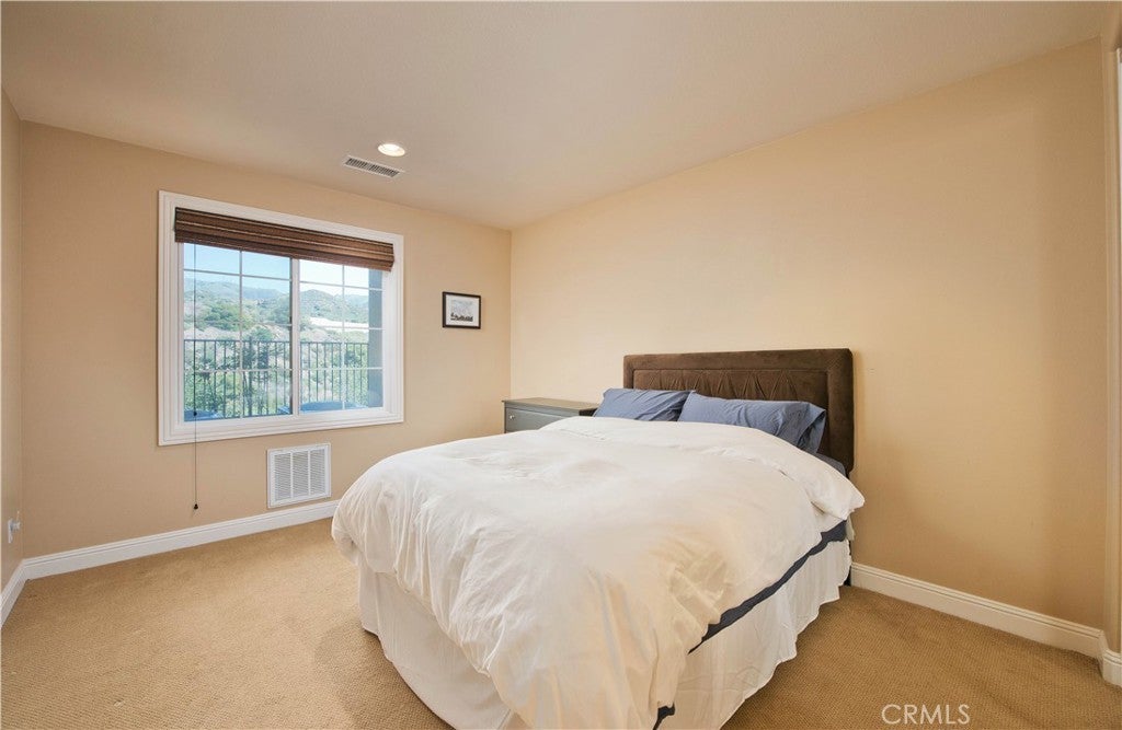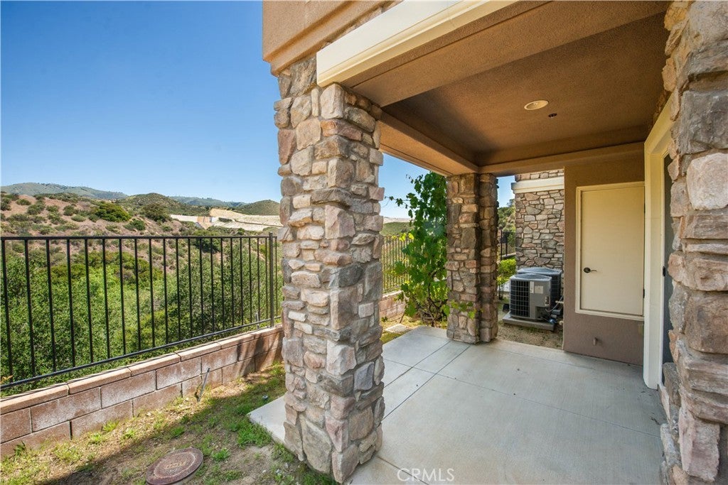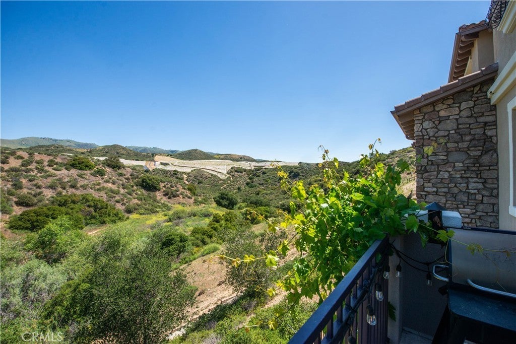 Stunning End Unit with Mountain Views in the Luxurious Gated Vistas at Indian Oaks. This is the most sought-after unit in the Vistas at Indian Oaks—a premium end unit tucked away at the back of the complex, offering unparalleled mountainside views and exceptional privacy. Featuring 4 bedrooms, 5 bathrooms, and an expansive bonus lower-level with over 600 sq ft of additional living space, with a living area, large bedroom and a full bathroom. Lower level has it's own entrance, its ideal for multi-generational living, hosting guests, or creating a home office suite. Enjoy the benefits of fully paid solar and 3 Tesla Powerwall batteries, so your covered during a black-out—a combined $70,000 value for sustainable, energy-efficient living. Step into a bright, open living room with soaring ceilings, firelplace, wired for data, crown molding, and recessed lighting. Multiple patios offer the perfect place to unwind while taking in stunning natural views. Upstairs, the luxurious primary suite is your personal retreat, complete with a fireplace, sitting area, and panoramic views. The ensuite bath boasts dual vanities, a soaking tub, a separate shower, and a spacious walk-in closet. Two additional large bedrooms are also located on the upper level—one with a private en-suite—and a full bath in the hall next to the convenient upstairs laundry room. Located in a quiet interior location of the gated community, you're just minutes from hiking trails, major freeways, and the Vineyards at Porter Ranch—offering shops, dining, and entertainment. Community amenities include a resort-style pool and spa with stunning city views, all in a secure, beautifully maintained complex. This rare offering combines luxury, sustainability, and lifestyle convenience—a truly exceptional home in one of Chatsworth’s most desirable communities.