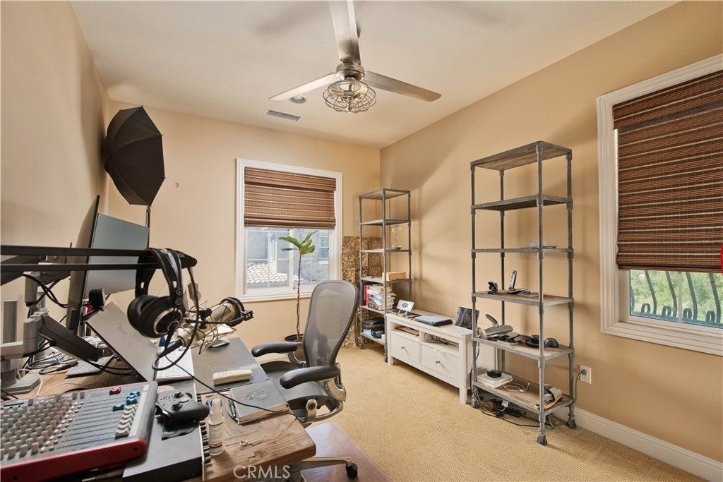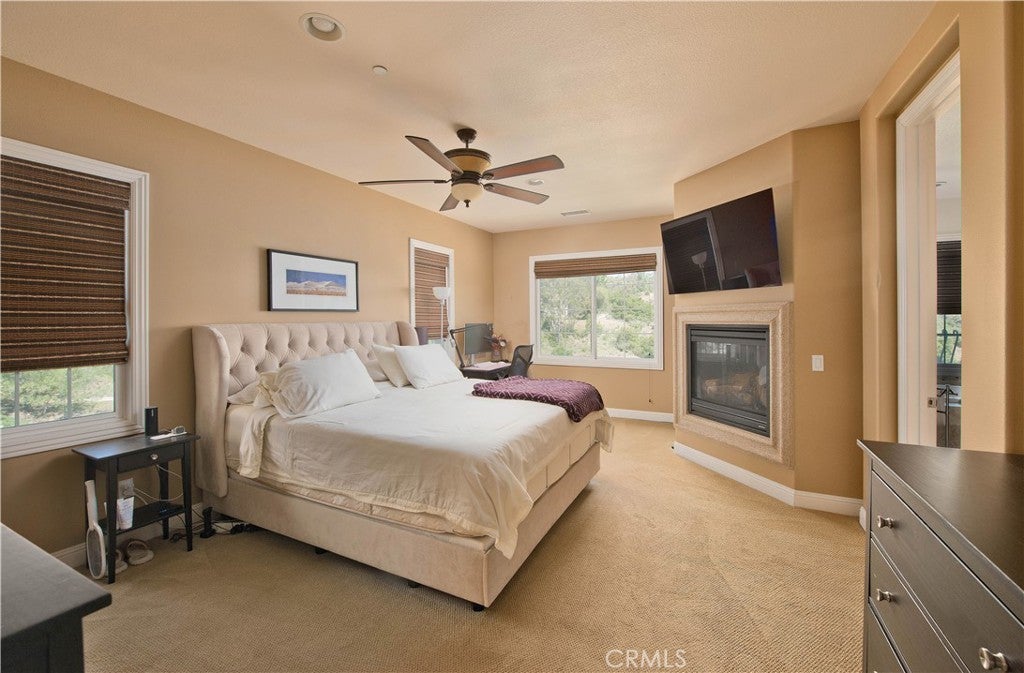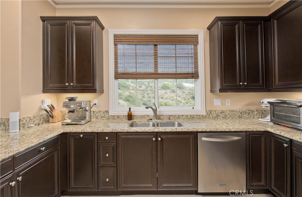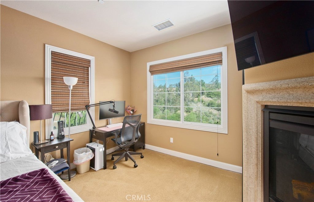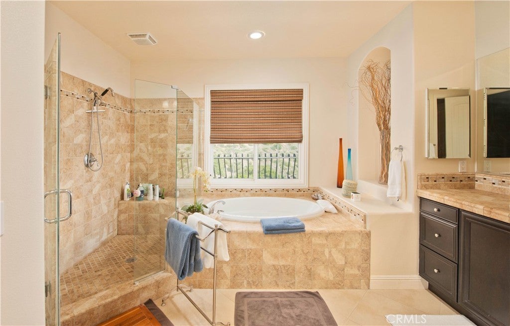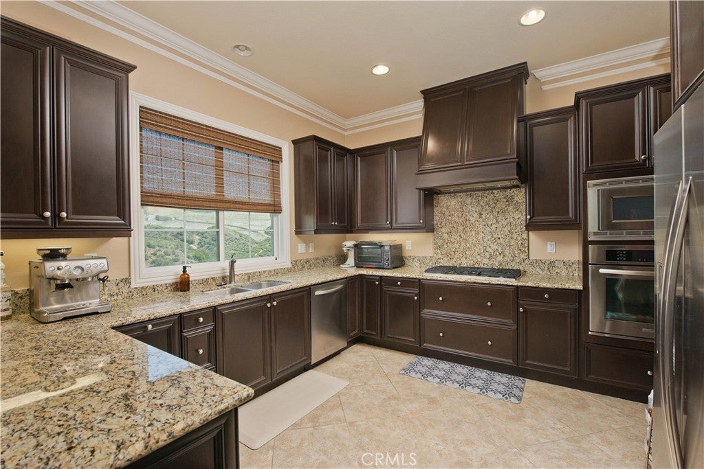 Stunning End Unit with Mountain Views in the Luxurious Gated Vistas at Indian Oaks. This is the most sought-after unit in the Vistas at Indian Oaks—a premium end unit tucked away at the back of the complex, offering unparalleled mountainside views and exceptional privacy. Featuring 4 bedrooms, 5 bathrooms, and an expansive bonus lower-level with over 600 sq ft of additional living space, with a living area, large bedroom and a full bathroom. Lower level has it's own entrance, its ideal for multi-generational living, hosting guests, or creating a home office suite. Enjoy the benefits of fully paid solar and 3 Tesla Powerwall batteries, so your covered during a black-out—a combined $70,000 value for sustainable, energy-efficient living. Step into a bright, open living room with soaring ceilings, firelplace, wired for data, crown molding, and recessed lighting. Multiple patios offer the perfect place to unwind while taking in stunning natural views. Upstairs, the luxurious primary suite is your personal retreat, complete with a fireplace, sitting area, and panoramic views. The ensuite bath boasts dual vanities, a soaking tub, a separate shower, and a spacious walk-in closet. Two additional large bedrooms are also located on the upper level—one with a private en-suite—and a full bath in the hall next to the convenient upstairs laundry room. Located in a quiet interior location of the gated community, you're just minutes from hiking trails, major freeways, and the Vineyards at Porter Ranch—offering shops, dining, and entertainment. Community amenities include a resort-style pool and spa with stunning city views, all in a secure, beautifully maintained complex. This rare offering combines luxury, sustainability, and lifestyle convenience—a truly exceptional home in one of Chatsworth’s most desirable communities.