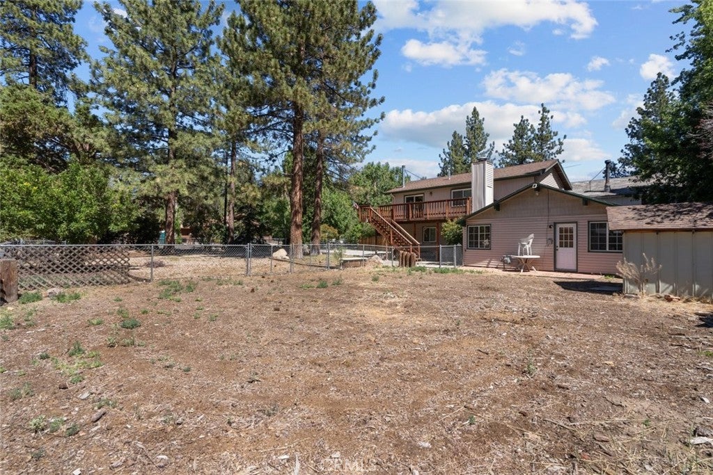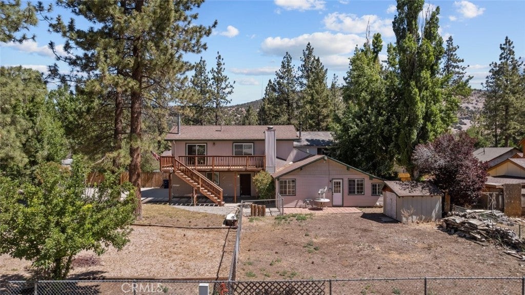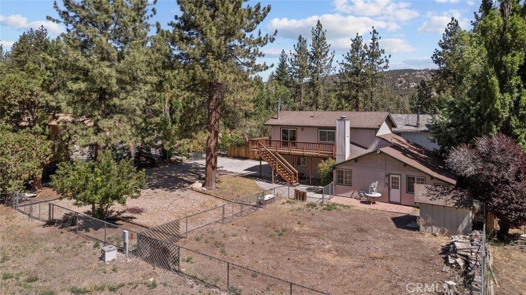 Welcome to this exquisite 4-bedroom, 3-bathroom home in the charming community of Big Bear with an additional two lots. As you make your way inside, you'll be greeted by the beauty of high wooden ceilings, enhanced by recessed lighting and stylish tile flooring throughout. Ample storage space and a convenient laundry area add to the practicality of this lovely abode. The home boasts both a spacious living room, complete with a cozy fireplace, and a family room for additional comfort and entertainment options. Step outside from the family room onto a large deck, where you can revel in the breathtaking views of the pristine white snow-capped mountains. Embrace the tranquility of sunsets and peaceful evenings, surrounded by the wonders of mother nature. The bedrooms are generously sized, offering bright and airy spaces for rest and relaxation. For added security, the property features Automatic Exterior Lights and Security Cameras, providing peace of mind. An attached 2-car garage ensures convenience and protection for your vehicles. Big Bear is renowned for its year-round allure, making it a destination that can be enjoyed in every season. Bring your Off-Road Toys and relish the proximity to Johnson Valley, Holcomb Creek 4x4 Trail, and Stoddard Valley for thrilling adventures. Enjoy the convenience of being close to Big Bear Lake, Bear Mountain Resorts, as well as a variety of restaurants and shopping destinations. Seize this opportunity to own a beautiful and versatile property in Big Bear, where the wonders of nature and the potential for customization await. Whether you seek a peaceful escape or a development venture, this home has it all. Embrace the endless possibilities and make this dream property yours today!