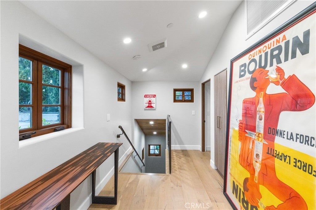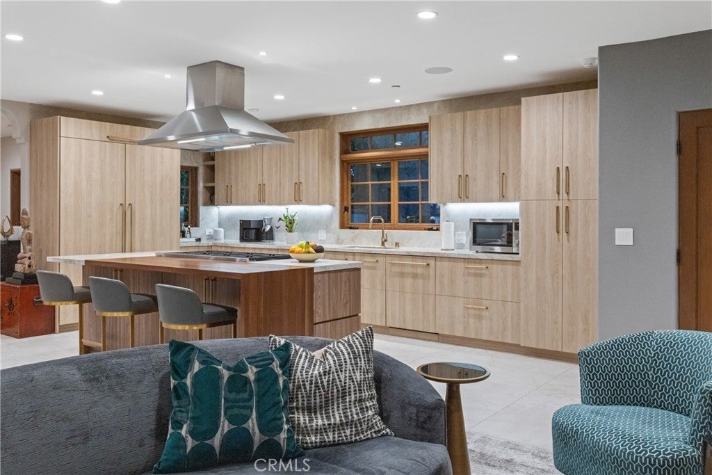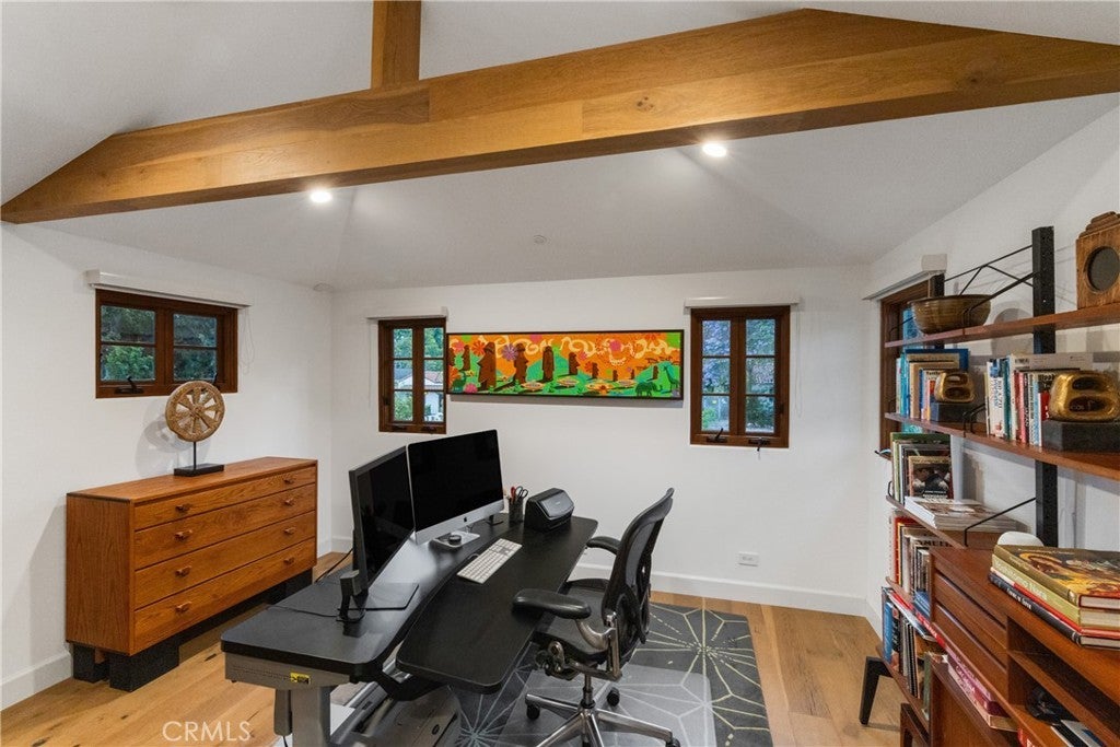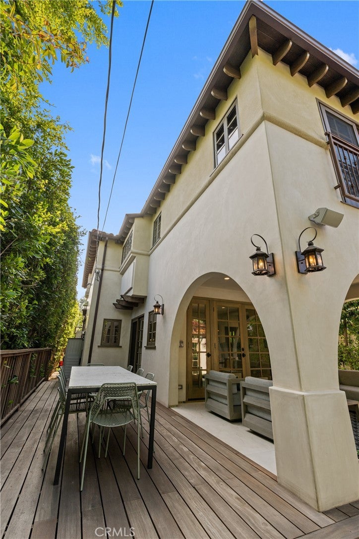Step into a Spanish Revival showpiece where Old Hollywood glamour meets the finest in modern craftsmanship with an Open Floor Plan—right in the heart of historic Sunset Square. Built in 2020 with no expense spared, this 4-bedroom (3 up,1 down), 4.5-bath architectural masterpiece offers 3,323 sq ft of California indoor-outdoor living, surrounded by lush greenery and just steps from the very best of Hollywood and West Hollywood. Every inch of this home reflects top-tier materials and artisanal detail, from hand-selected custom tile work to rich beamed ceilings and poke millwork. The chef’s kitchen is a true centerpiece, featuring a grand center island, custom bar, and elegant dining area designed for hosting in style. The expansive living areas seamlessly open to a verdant backyard oasis with a covered heated veranda, elevated dining deck, and a romantic Zen-inspired fire pit lounge—perfect for evening gatherings under the stars. The primary suite is a retreat unto itself—complete with modular dual closets, a luxurious spa bath, and a Juliette balcony framing treetop and Hollywood Hills views. Additional highlights include a detached media room/office/gym with climate control and custom finishes, as well as a Tesla EV charger. Located on a sun-drenched street in one of L.A.'s most iconic and walkable neighborhoods, this home captures the spirit of classic Hollywood with the quality and comfort of modern luxury.