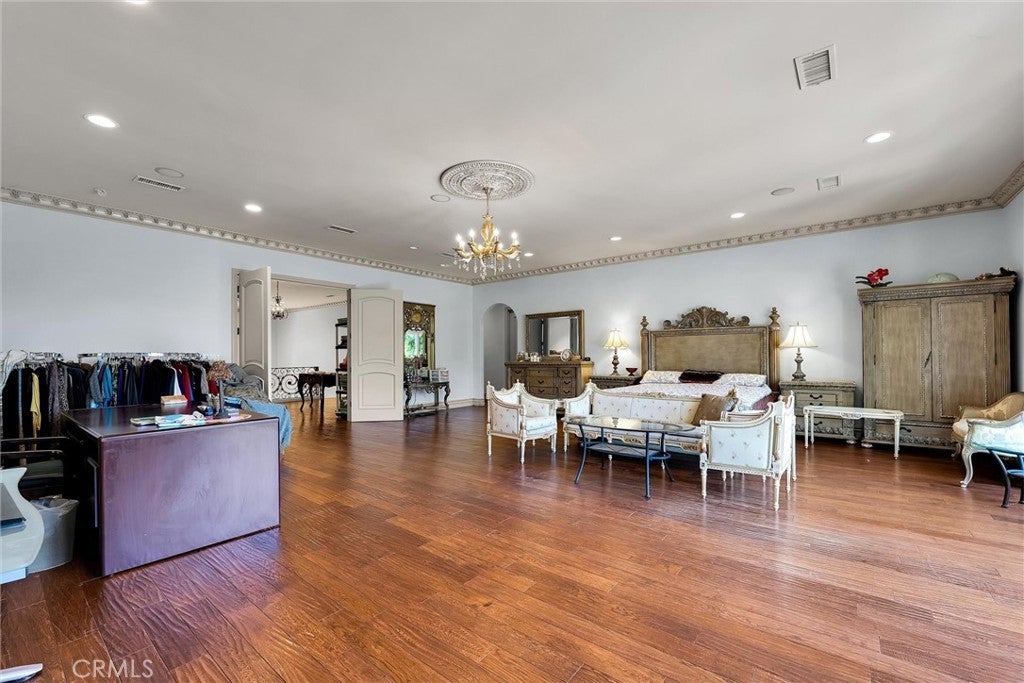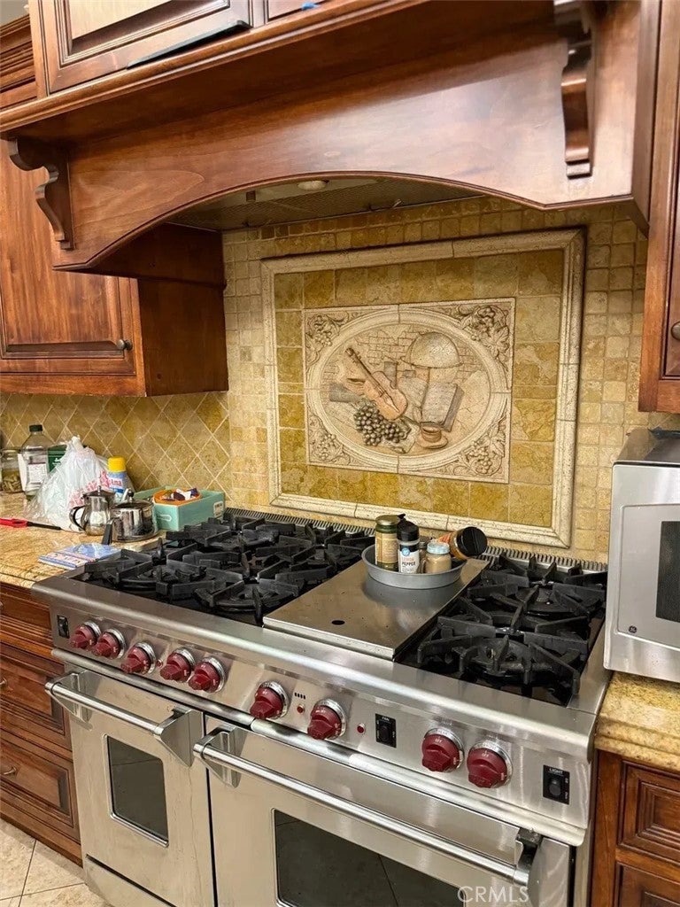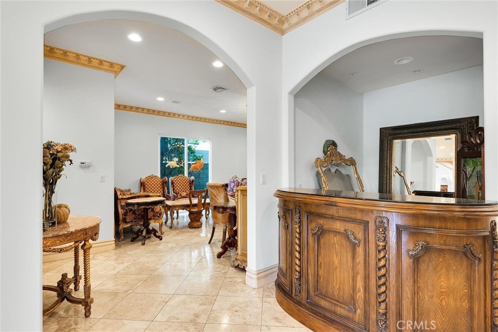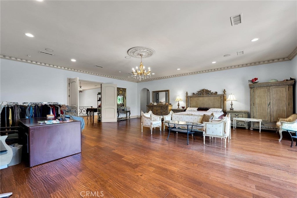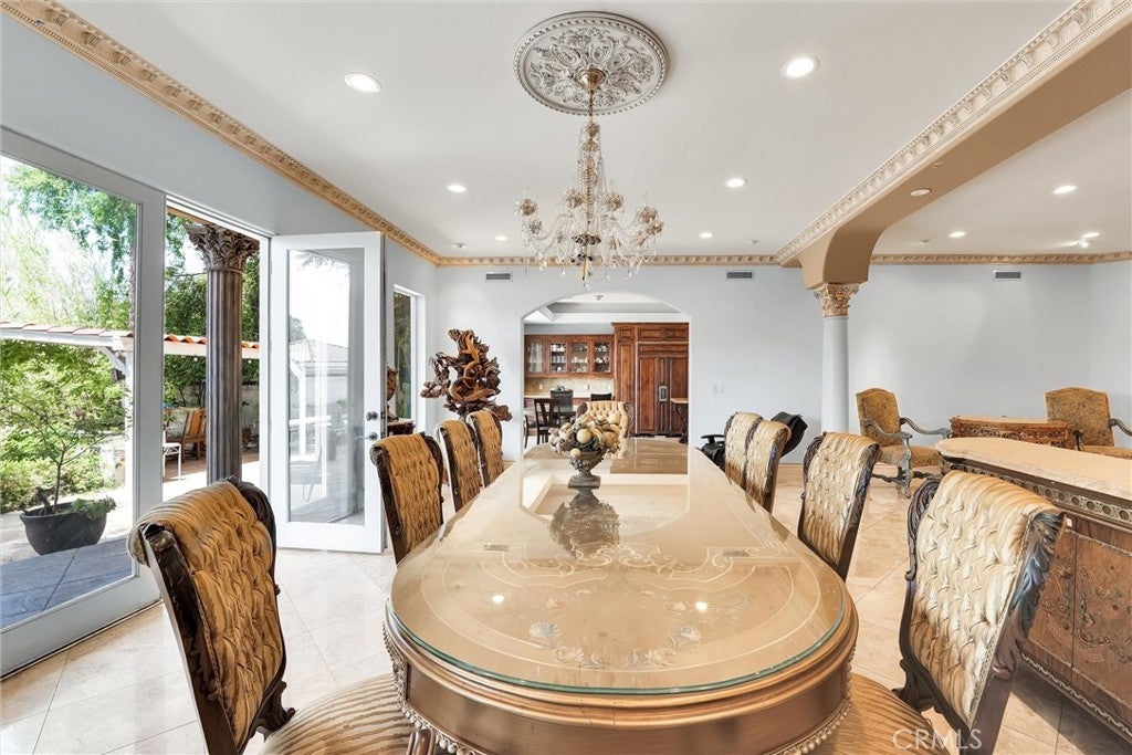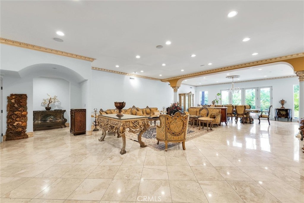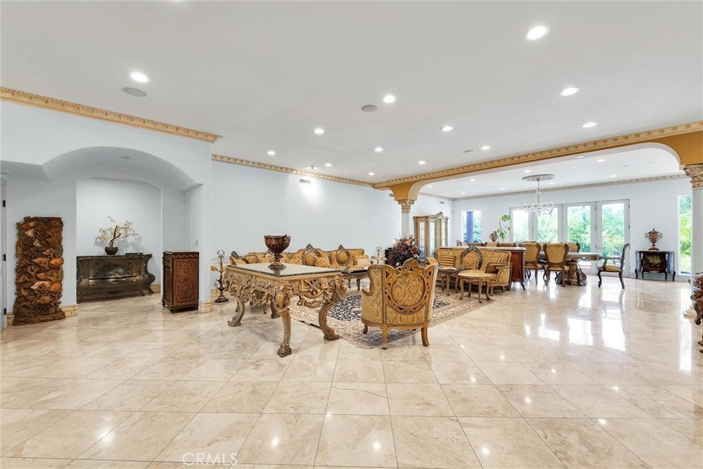 Nestled on a quiet, tree-lined street, this exquisite residence was rebuilt in 2007 and offers over 6,250 sq ft of luxurious living space on a sprawling 22,804 sq ft lot. Designed for comfort and entertaining, the home features 6 spacious bedrooms, 7.5 bathrooms, and a versatile bonus room — with two bedrooms and the bonus room conveniently located on the first floor. Step through the grand double-door entry into a dramatic foyer with soaring vaulted ceilings, elegant crown molding, and a spacious formal living room with a marble fireplace. The bright, French-style kitchen is a chef's dream, showcasing custom European Craftsman cabinetry, granite countertops, a large center island, and top-of-the-line Sub-Zero and Wolf appliances. A charming breakfast area overlooks the expansive, flat backyard with a sparkling swimming pool - ideal for hosting guests or enjoying peaceful mornings. Upstairs, a custom antique wrought iron staircase leads to a gallery landing with hardwood flooring and and four deluxe bedrooms. The luxurious primary suite includes a private balcony, dual walk-in closets, and a cozy fireplace. Additional highlights include marble flooring on the first level, an integrated sound system, a fully gated semi-circular driveway, a 3-car garage, and solar panels for energy efficiency. Blending timeless elegance with modern amenities, this exceptional home is a rare opportunity to enjoy premium living in one of Woodland Hills' most desirable neighborhoods. Furnished is negotiable.