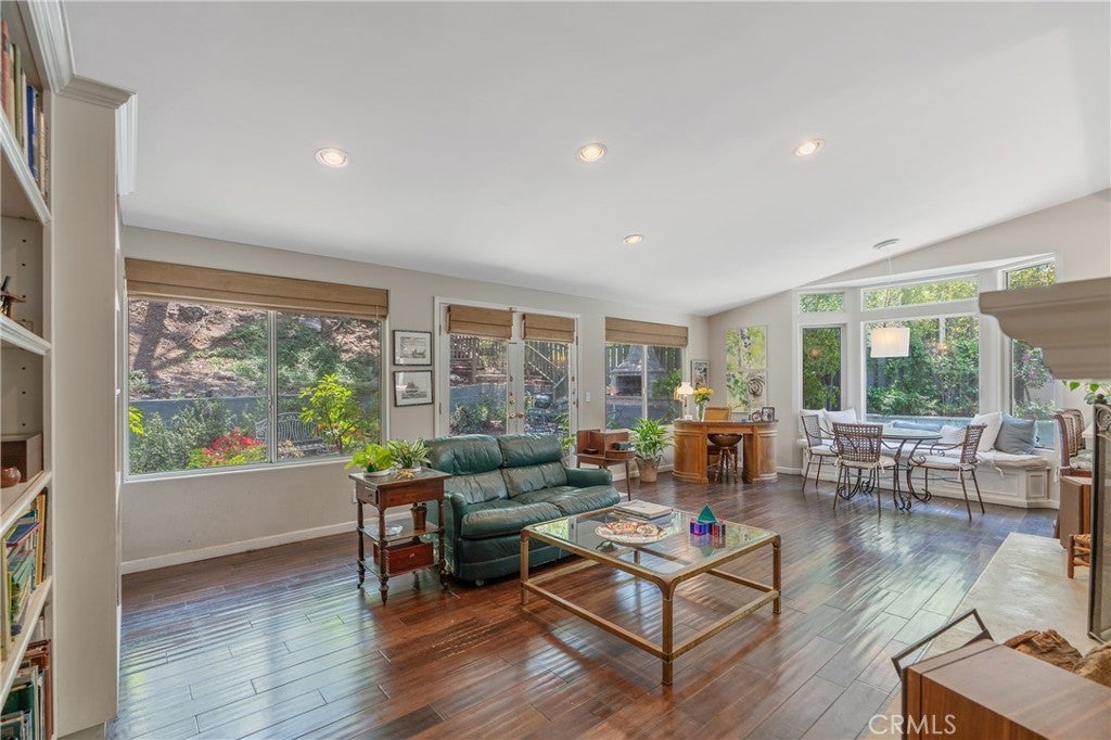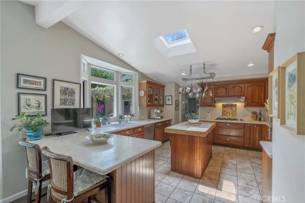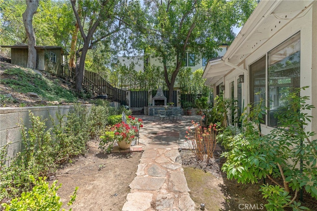 Looking for the convenience of city living, but with the feel of being in the country? Tucked away at the end of a long and private driveway, this hidden gem resting on almost 1/2 acre in Encino offers the ultimate in tranquility, privacy and charm. Surrounded by lush, mature trees and secured behind gates, this 4 bedroom, 3 bathroom home feels like a peaceful retreat while still being moments away from all the conveniences this location offers. Step inside the formal entry to find spacious, traditional living areas, a formal dining room with wet bar, and a formal step down living room, all perfectly situated to host your family dinners or guests. A well-appointed kitchen is bathed in natural light thanks to both a skylight and oversized south-facing windows. A generous kitchen island with breakfast bar makes it the heart of the home, and features stainless steel appliances with double ovens. Adjacent to the kitchen is the great room, complete with a built-in banquette for everyday meals, a stone hearth and fireplace, custom built-in bookcases and windows everywhere to provide views of the yard. Down a long hallway, you will find three bedrooms and two baths, with the primary bedroom and oversized primary bathroom tucked privately at the rear of the property. A fourth bedroom on the other side of the home features an en-suite bath and is currently set up as a working art studio, with French doors that open to views of the yard and swimming pool. The outdoor spaces create a true sanctuary - a sparkling pool, multiple dining or outdoor lounging areas, an incredible brick outdoor BBQ and the most whimsical treehouse nestled high among the branches, offering a touch of magic and wonder for all ages. Seeking a quiet place to unwind? This secluded property delivers privacy, natural beauty, and comfort. If you crave serenity and character and want access to Encino’s best elementary school, Mulholland Drive and the westside within minutes, this home in one of the valley’s most desirable neighborhoods is for you.
